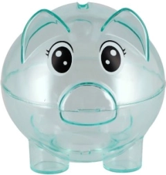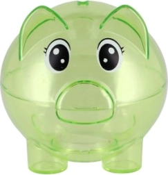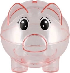 Piedāvājam jums caurspīdīgu cūciņas formas krājkasīti, kas ir ne tikai praktiska, bet arī jautra! Šī 10 cm lielā cūciņa ir lielisks sabiedrotais, lai uzsāktu ietaupīšanas ieradumus.