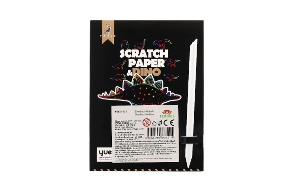 Komplektā iekļauti 9 skrāpējamie attēli ar dinozauru motīviem.