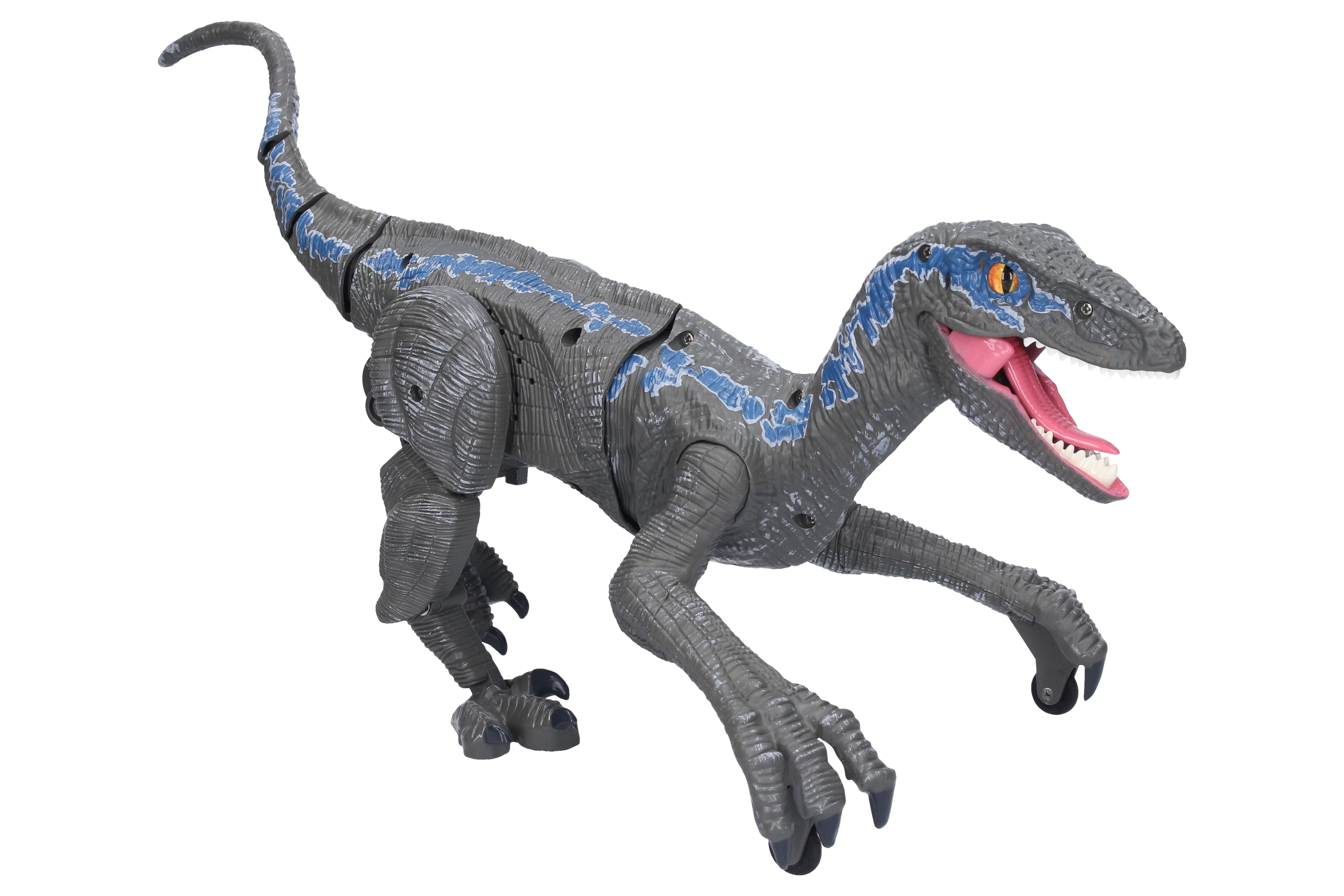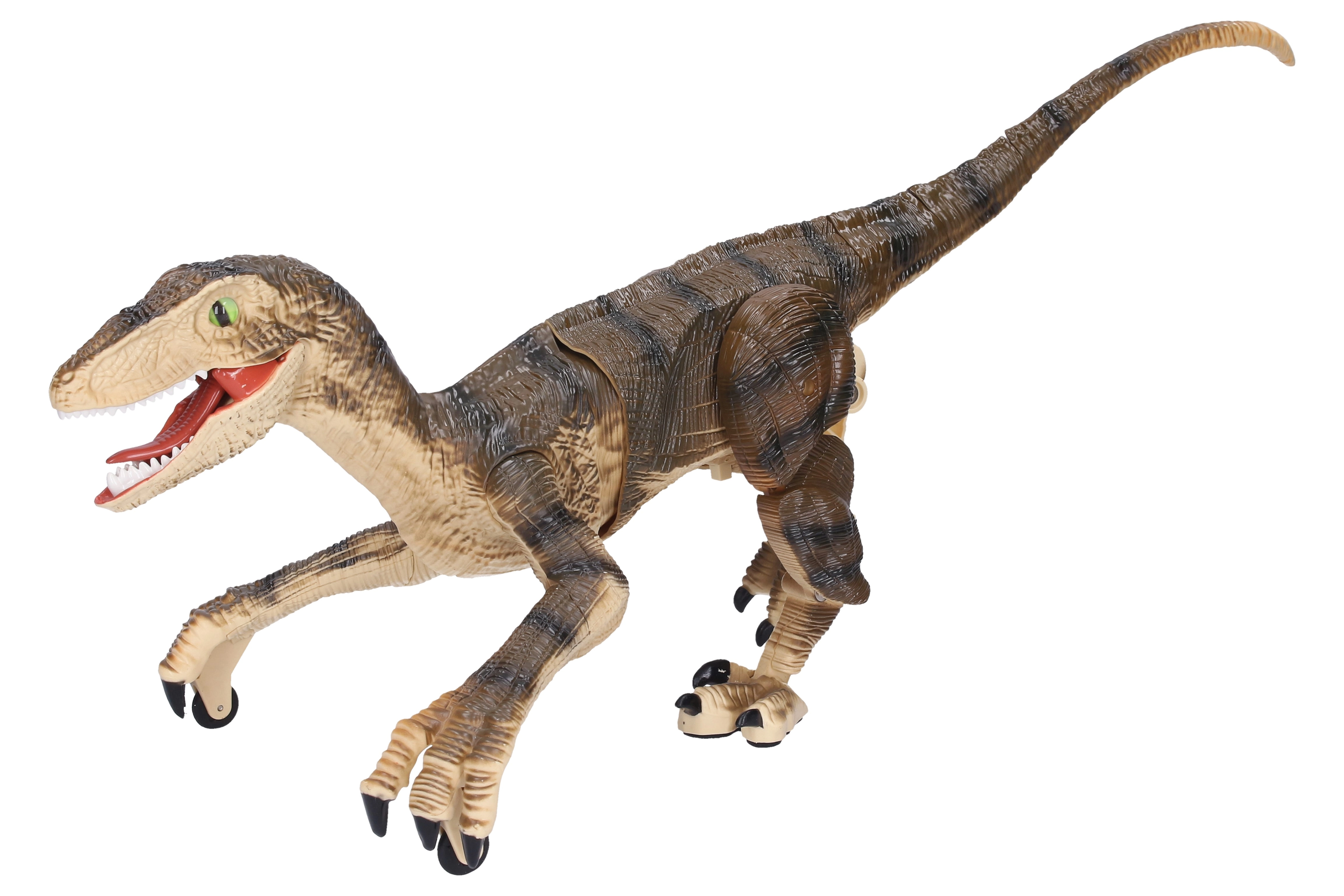 Vadi aizvēsturisku plēsēju un izbaudi dinamisku izklaidi ar realistisku raptoru ar tālvadību. Pateicoties plūdenām, reālistiskām kustībām, spīdošai žokļa daļai un dinozaura rūcienam, rotaļās ienāk spriedze un pirmatnīgā laikmeta atmosfēra. Ideāli piemērots mazajiem dinozauru faniem un interaktīvo rotaļlietu cienītājiem.