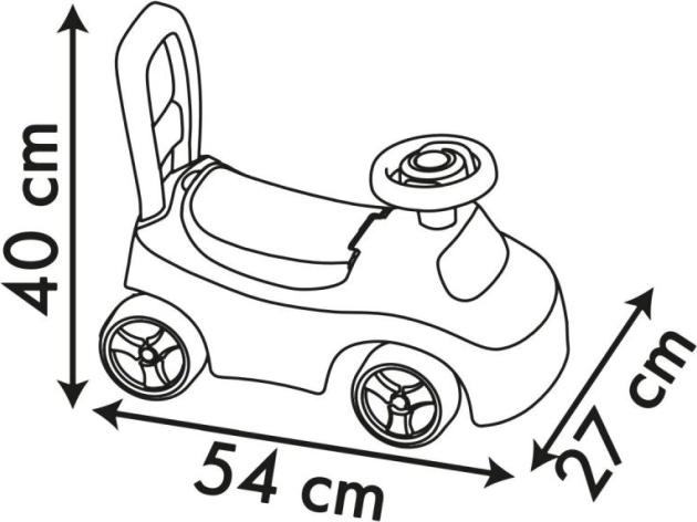Praktiskā uzglabāšanas kaste zem atveramā sēdekļa ir piemērota mazām rotaļlietām vai ceļotāja dārgumiem. Stūre ar tauri piesaista rotaļām, kluss riteņu gaitas troksnis ir piemērots arī interjeram. Vieglo plastmasas konstrukciju ir viegli pārnēsāt, un tā iztur ikdienas lietošanu.