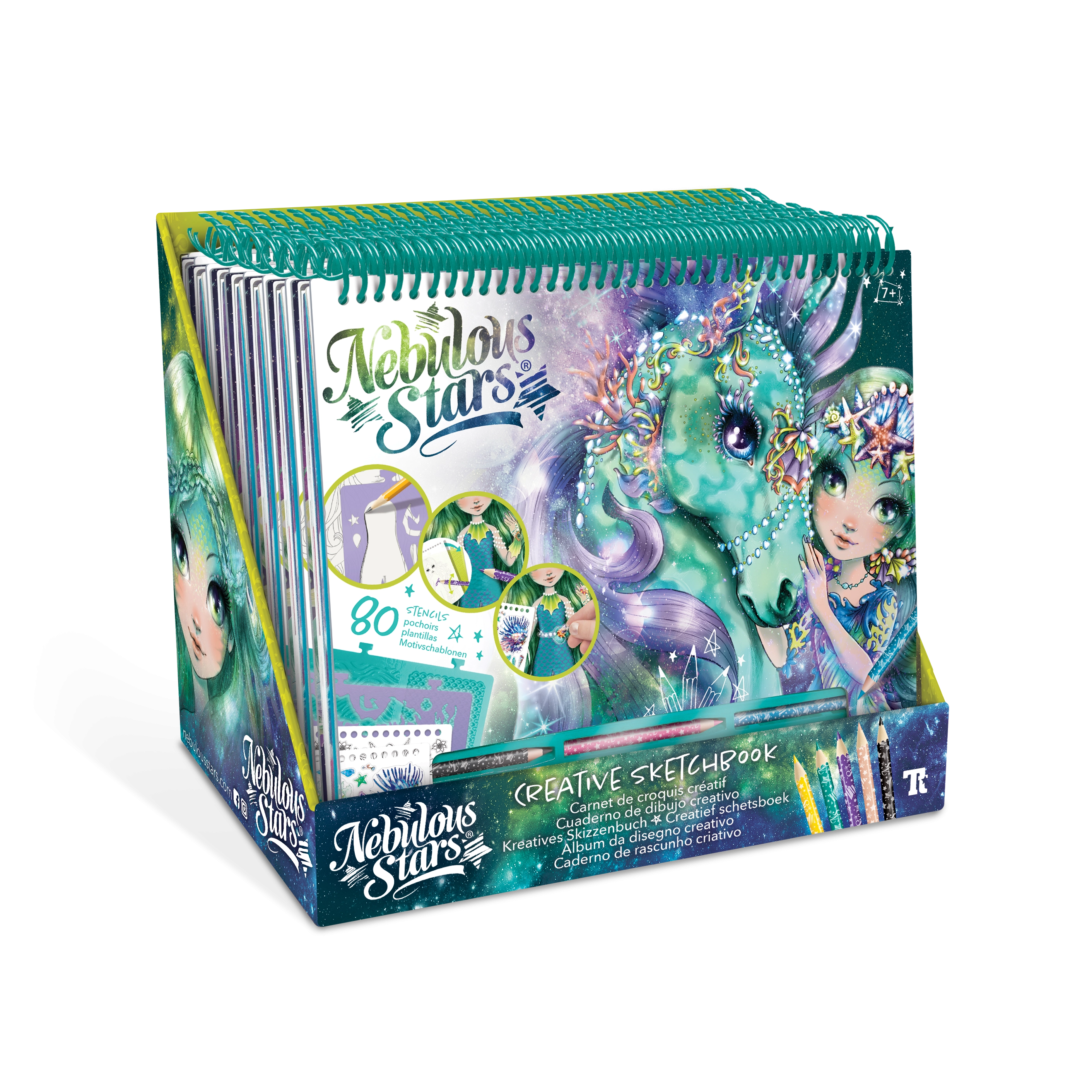 Atklājiet burvīgo NEBULOUS STARS pasauli ar radošo skiču grāmatu zaļā krāsā. Komplektā ir viss radošam darbam – no 250 uzlīmēm un 12 krītiņiem līdz pat 80 šabloniem un 35 attēlu lapām. Pateicoties pamācībām 12 zīmēšanas tehnikās, bērni attīsta iztēli, sīkās motorikas prasmes un krāsu izjūtu. Ideāla dāvana mazajām māksliniecēm no 7 gadu vecuma.