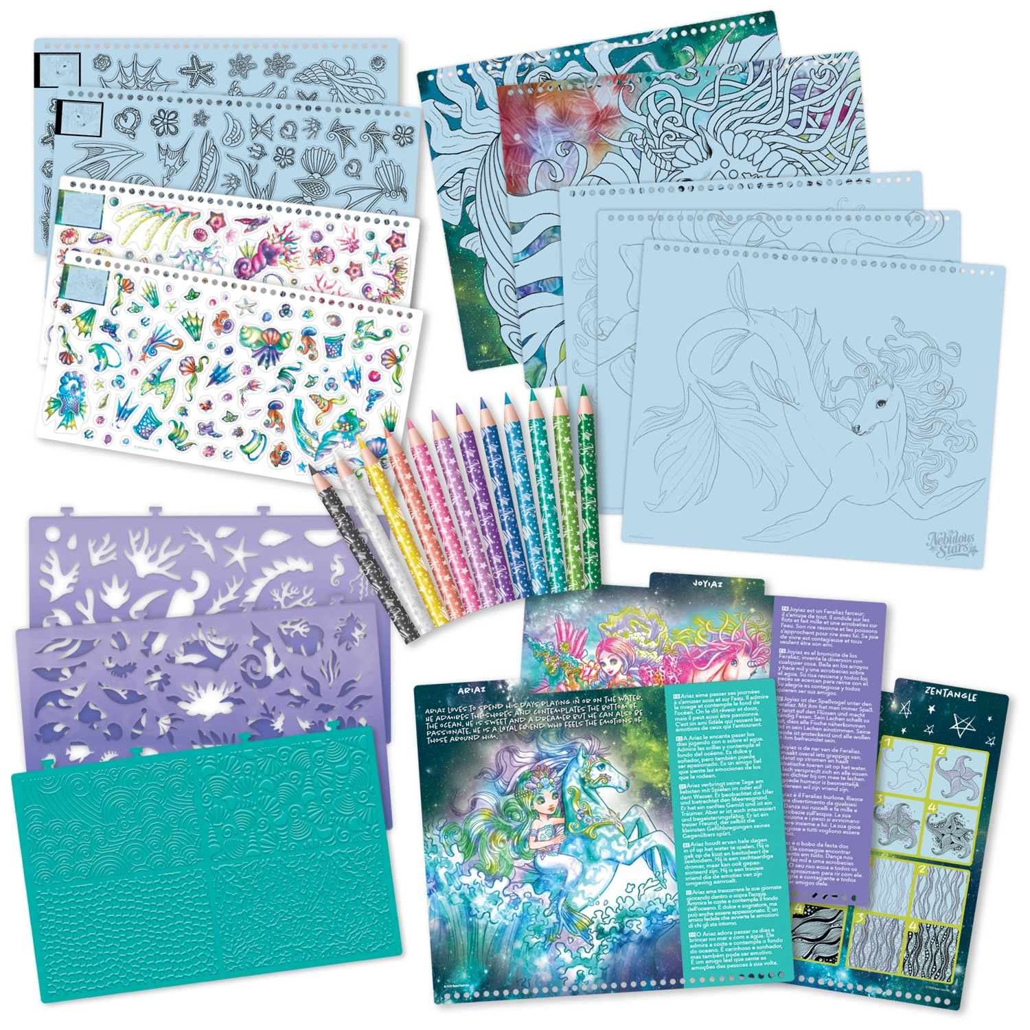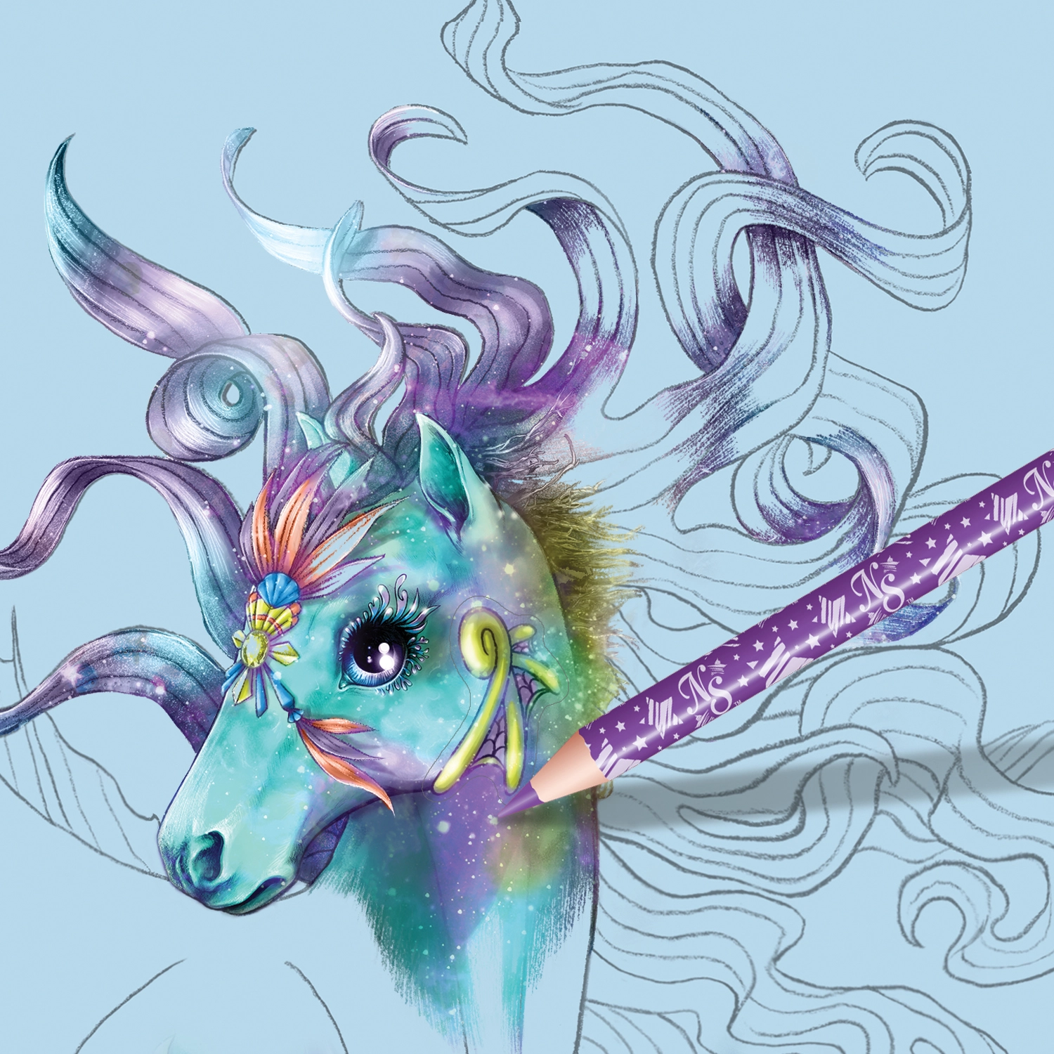 Iepakojumā atradīsiet daudzveidīgu mākslas piederumu un aksesuāru klāstu, ar kuriem bērni var pārzīmēt, krāsot, zīmēt un līmēt. Skaidras soli pa solim pamācības palīdz ātri apgūt jaunas tehnikas un radīt skaistus attēlus, iedvesmojoties no maģiskās dzīvnieku pasaules.