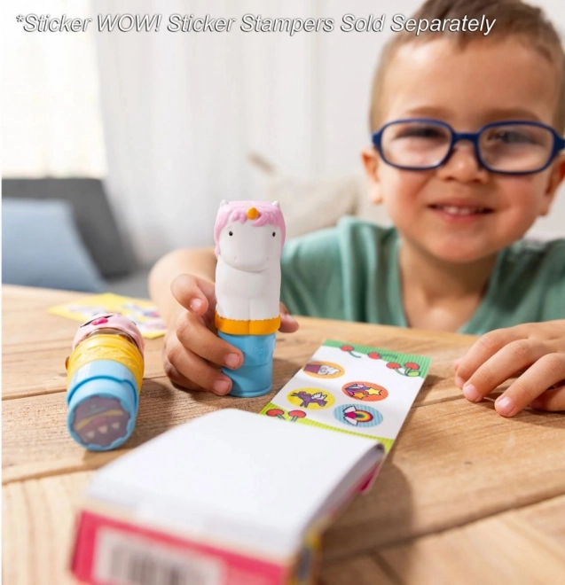 Pateicoties 200 uzlīmēm ar vienradžiem, varavīksnēm, sirsniņām un citiem pasakainiem elementiem, bērni var veidot oriģinālas kompozīcijas un attīstīt savu iztēli. Universāla savietojamība ar visiem STICKER WOW! zīmogiem ļauj viegli paplašināt radošās iespējas.