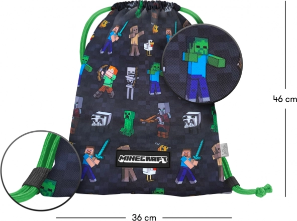 Stilīgs un izturīgs BAAGL maisiņš ar licencētu MINECRAFT motīvu ir ideāls maiņas apaviem, sporta apaviem un citiem sīkumiem. Pateicoties stingrajām aukliņām, tas kalpo arī kā praktisks mugursomas tipa maiss, ko bērni un pieaugušie izmantos skolā, pulciņos un brīvajā laikā.