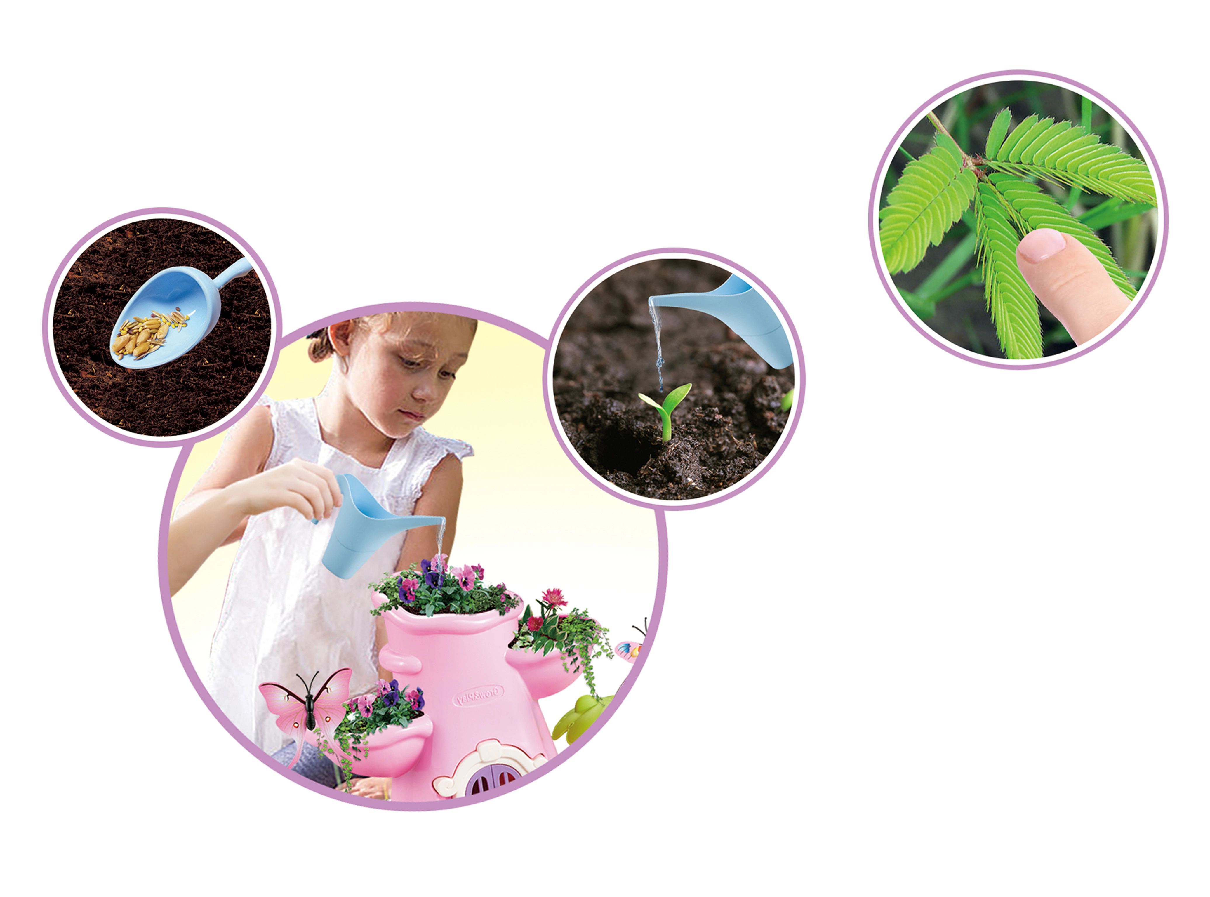 Šis burvīgais komplekts bērniem sniedz prieku atklāt augu pasauli. Pateicoties pilnam komplektam, var sākt uzreiz – no sēklu iesēšanas līdz regulārai laistīšanai un augšanas vērošanai. Spīdošā un skanošā mājiņa rada pasakainu atmosfēru, kas iedvesmo tālākai izpētei un rotaļām.