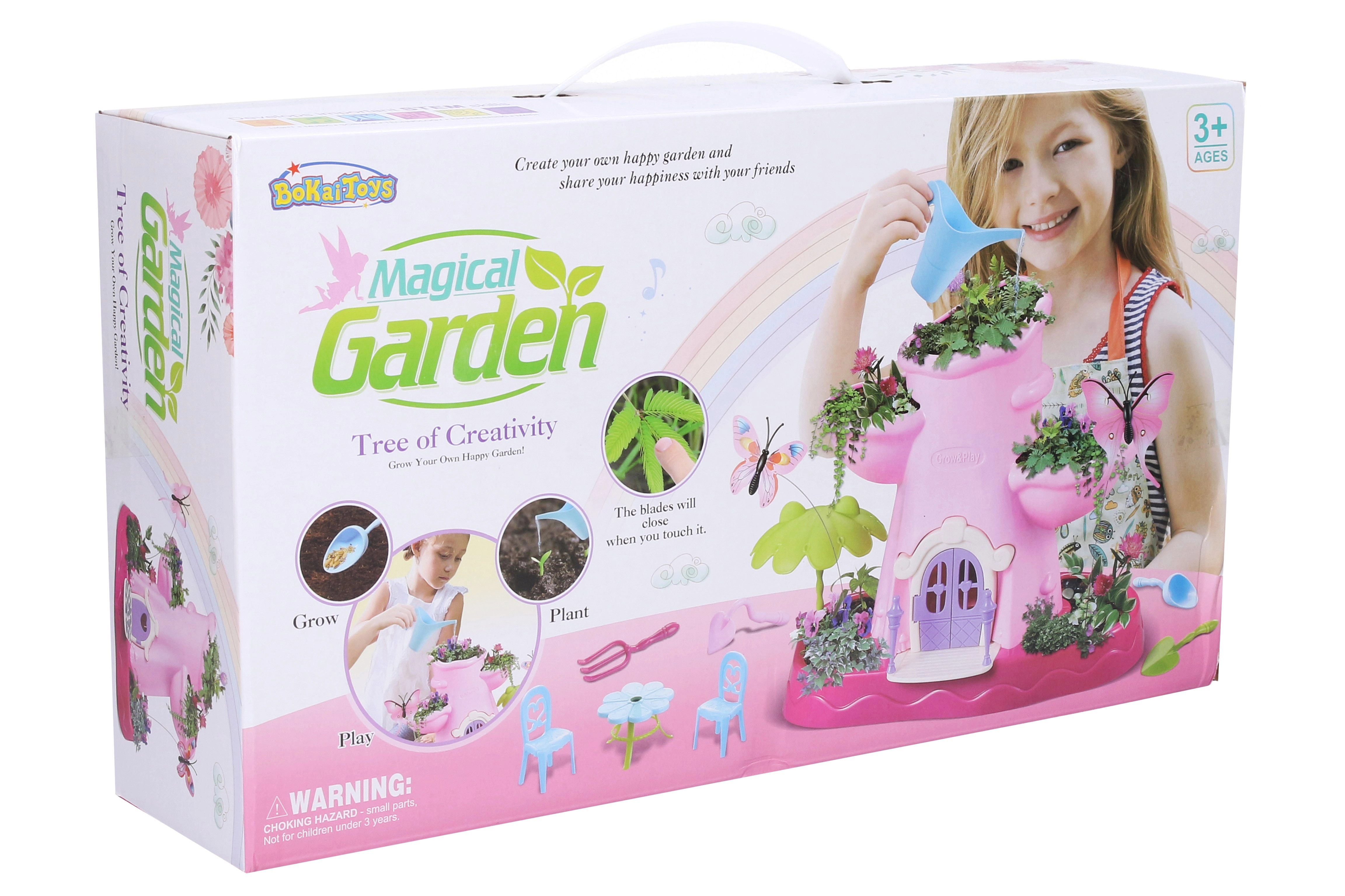 Atklājiet audzēšanas burvību ar bērnu komplektu Burvju dārzs ar tauriņiem – tajā ir viss, kas mazajiem dārzniekiem nepieciešams savai pirmajai pasaku dārziņai. Iekļauta mājiņa, kas spēlē patīkamu melodiju un spīd, puķu pods, audzēšanas augsne un sēklas, bērnu dārza rīki, lejkanniņa, tauriņi un dārza sēdvieta. Ideāli piemērots radošuma attīstīšanai, augu kopšanas apguvei un priekam, vērojot, kā viss aug ar katru dienu.