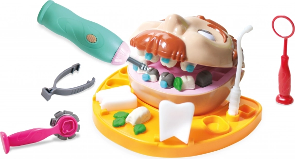 Šis jautrais radošais komplekts sniedz bērniem realistisku zobārstniecības pieredzi. Pateicoties sešām krāsainām modelējamām masām un detalizētiem instrumentiem, viņi var izmēģināt zobārsta darbu, veidot dažādus zobu veidus, labot kariesu un gatavot breketes. Viss ir izstrādāts, lai veicinātu sīko motoriku, radošumu un mācīšanos rotaļājoties.