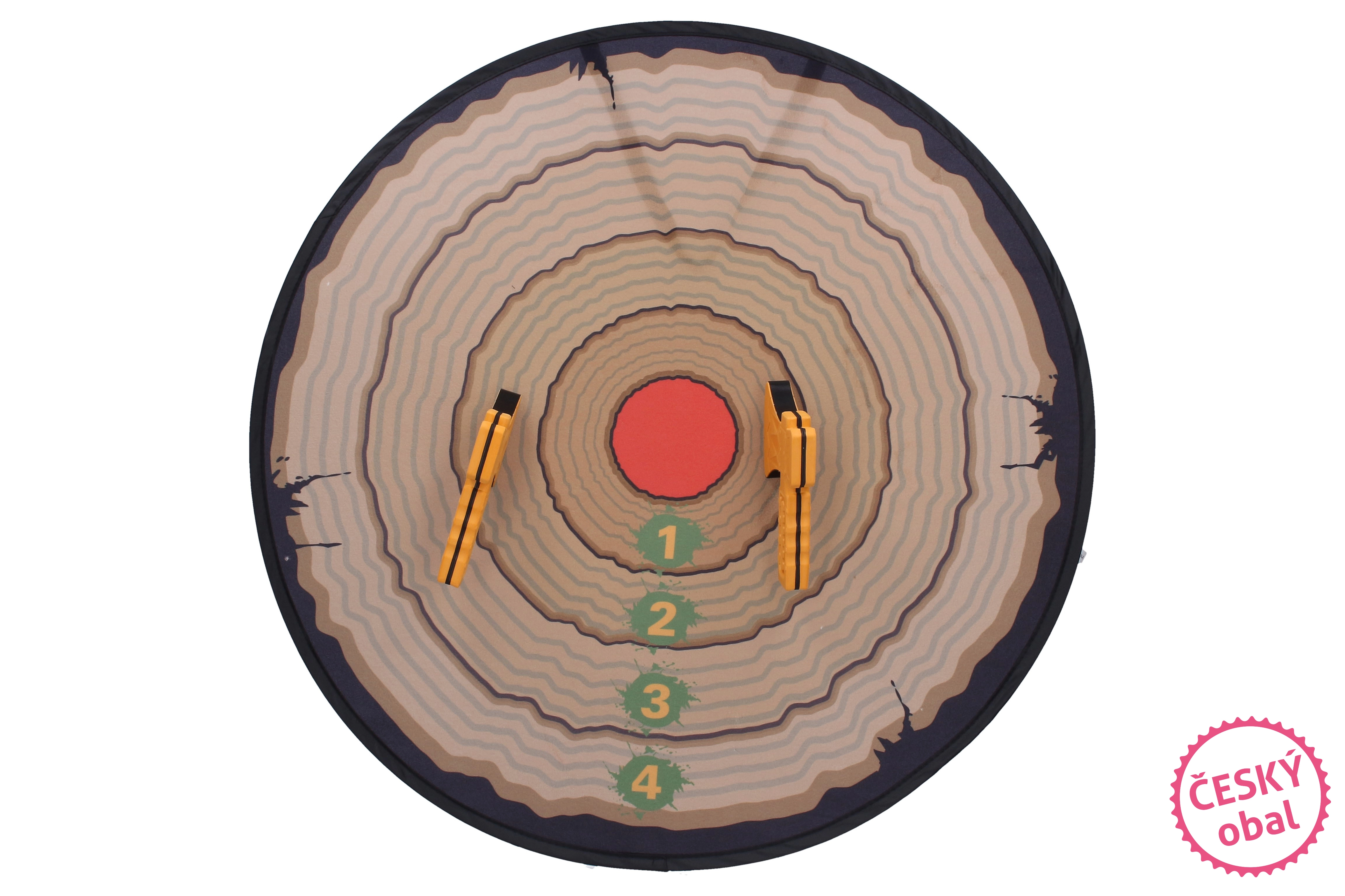 Izklaidējošs komplekts gan mazajiem, gan lielākiem palaidņiem: mešanas cirvji ar 66 cm diametra mērķi precizitātes un veiklības treniņiem. Mērķi ar piesūcekņiem viegli piestiprināt pie gludas virsmas, bet divi droši cirvji ar lipekļlentes (Velcro) pārklājumu nodrošina bezrūpīgu spēli mājās un ārā.