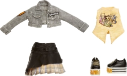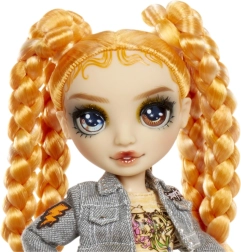 Izteiksmīga oranža krēpe bizēs, džinsu jaka ar uzšuvēm un platformas kurpes ar uzrakstu RAINBOW padara Clementine par jebkuras kolekcijas zvaigzni.