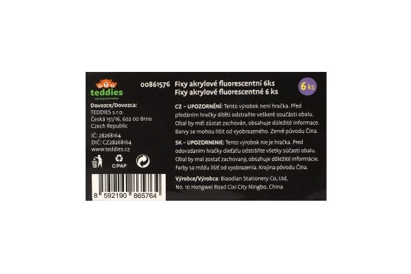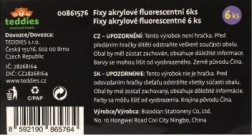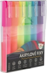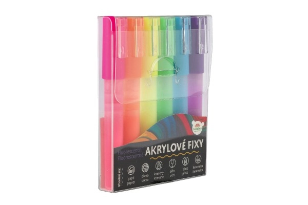 Akrila marķieru komplekts ar intensīvām fluorescējošām krāsām universālai radošai lietošanai. Piemēroti papīram, kokam, akmeņiem, stiklam, plastmasai un keramikai. Iepakojumā ir 6 koši toņi, kas lieliski sedz un ātri žūst. Ideāli dekorēšanai, marķēšanai un radošiem darbiem bez izsmērēšanās. Pirms lietošanas sakrata. Nav rotaļlieta.