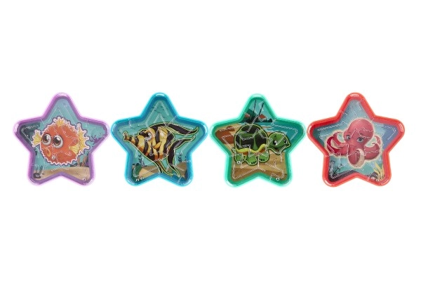Izklaidējoša kabatas mīkla zvaigznes formā trenē veiklību, pacietību un koordinācijas prasmes. Nolieciet un pagrieziet zvaigzni, lai aizvadītu lodīti pa pareizo trasi no malas uz centru un atpakaļ. Dažādi varianti ar jautriem jūras motīviem un krāsu miksu nodrošina, ka katrs mazais pētnieks atradīs ko sev.