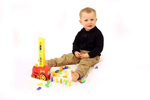 Izklaidējošs domino vilciens, kas braucot pats saliek līdz 60 krāsainiem klucīšiem glītā rindā. Piedāvā automātisku virziena maiņu pie sadursmes, vienkāršu virziena vadību, pagriežot skursteni, un efektīvas gaismas un skaņas. Lieliski attīsta bērnu sīko motoriku, pacietību un radošumu.