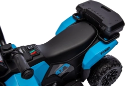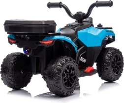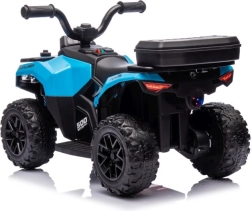 Stilīgs bērnu akumulatora kvadricikls GTS1155 zilā krāsā piedāvā reālistisku braukšanas pieredzi, izturīgu plastmasas konstrukciju un lielus bezceļa riteņus izklaidei gan ārā, gan mājās. Vienkārša vadība ar stūri, start/stop pogu un ērtu sēdekli nodrošina drošu un aizraujošu braucienu mazajiem braucējiem.