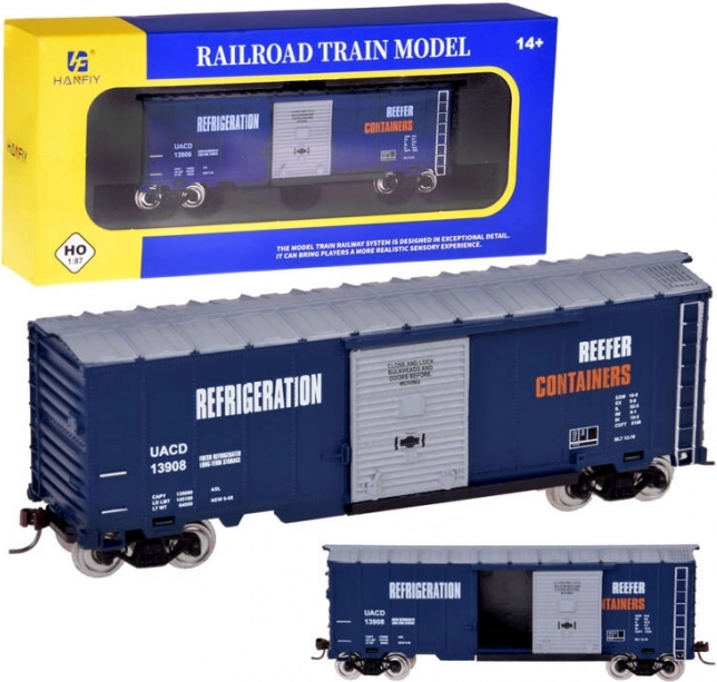 Reālistisks modeļa vagons mērogā H0 1:87 papildinās jebkuru sliežu ceļu. Tam ir bīdāmas durvis, detalizēts uzraksts REFRIGERATION / REEFER CONTAINERS un metāla riteņi vienmērīgai gaitai. Izturīga konstrukcija no kvalitatīvas plastmasas un precīzi izstrādātas detaļas padara to par lielisku izvēli gan kolekcionāriem, gan bērniem.