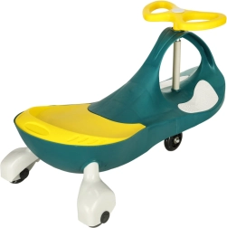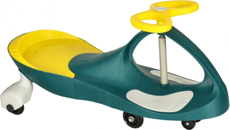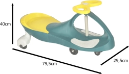 Bērns nosaka virzienu un ātrumu, grozot stūri – plūdena un aizraujoša kustība veicina koordināciju un līdzsvaru.