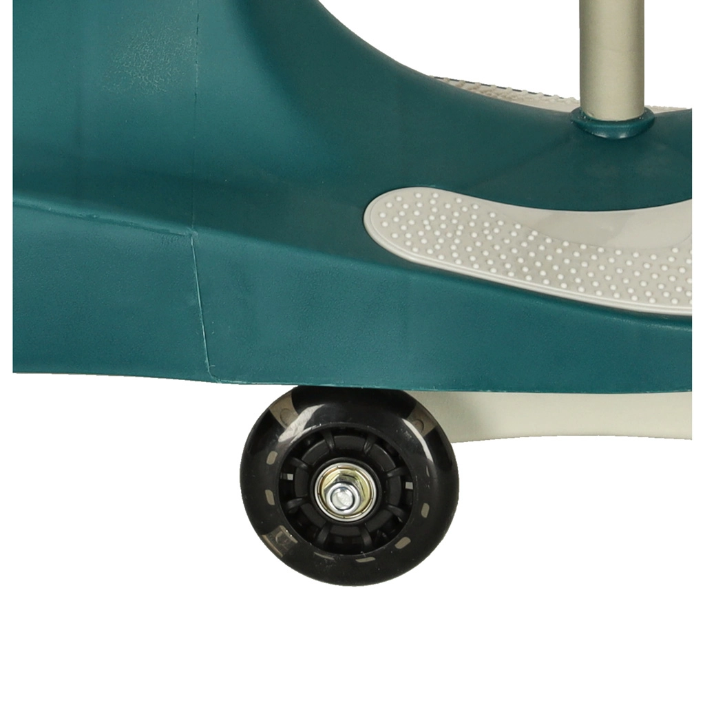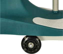 Plati izliktie aizmugurējie riteņi uzlabo stabilitāti un palīdz novērst apgāšanos. Riteņi ar LED diodēm ir pievilcīgi bērniem, bet gumijotā virsma vienlaikus saudzē grīdas. Izturīgā plastmasas konstrukcija iztur ikdienas lietošanu un nodrošina stundām ilgu drošu izklaidi.