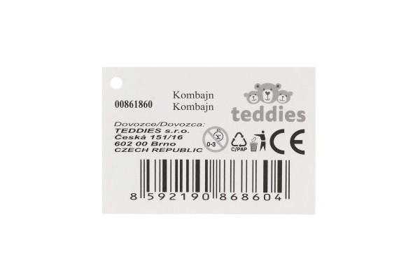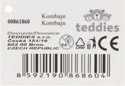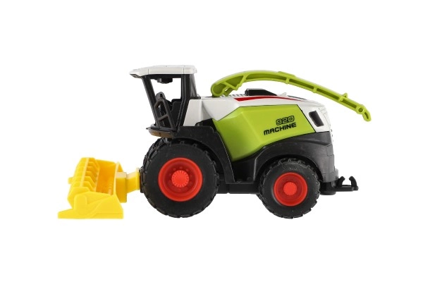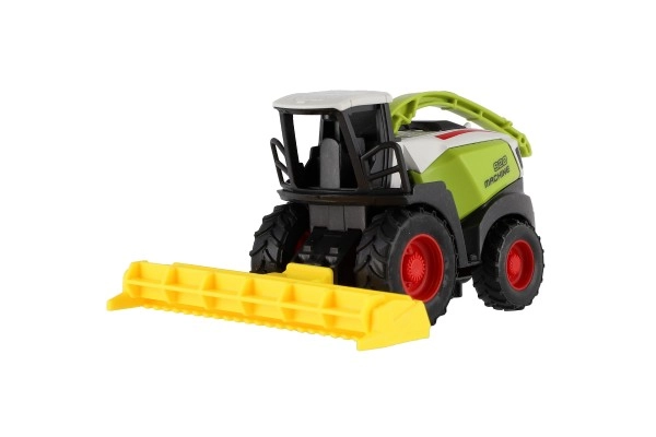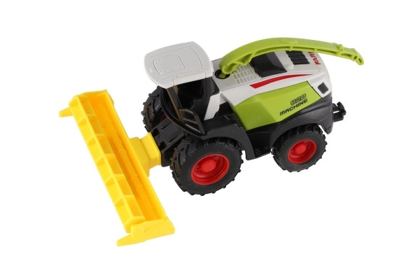 Kombaina modelis uzticami atdarina īstās lauksaimniecības tehnikas – lielie riteņi, priekšējais uzgalis un košas krāsas vēl reālistiskākai spēlei.