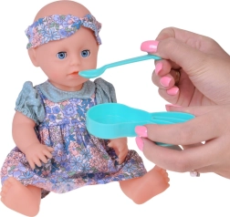 Noliekot, lelle ver ciet acis, kas piešķir spēlei reālismu. Kustīgās ekstremitātes un galva atvieglo pārģērbšanu un dažādu rotaļu scenāriju radīšanu. Stilīgs ziedu komplekts ar matu lenti un biksītēm papildināts ar krāsainiem barošanas un nomierināšanas aksesuāriem.
