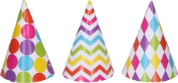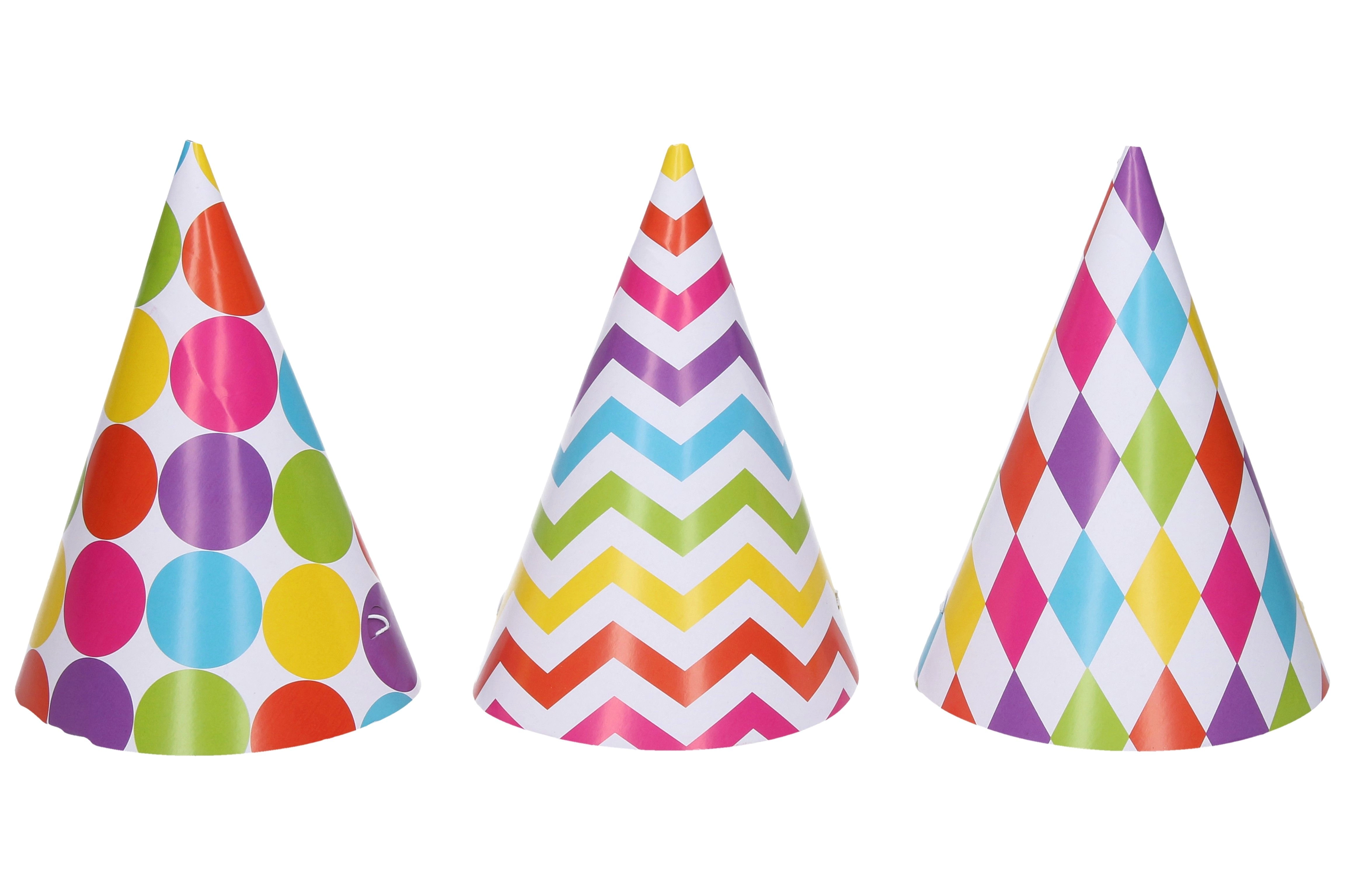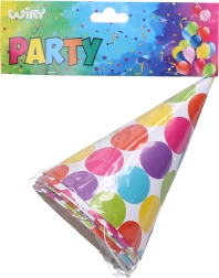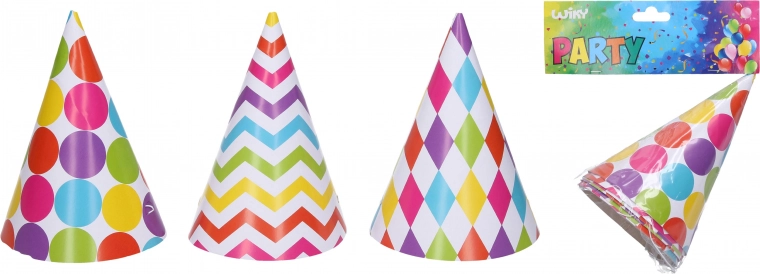 Šīs jautrās svētku cepurītes ir perfekti piemērotas bērnu ballītēm, dzimšanas dienas svinībām vai jebkurām citām svinībām. Tās pieejamas iepakojumā pa 6 gabaliem, kas ļauj dalīties priekā ar vairākiem viesiem.
