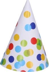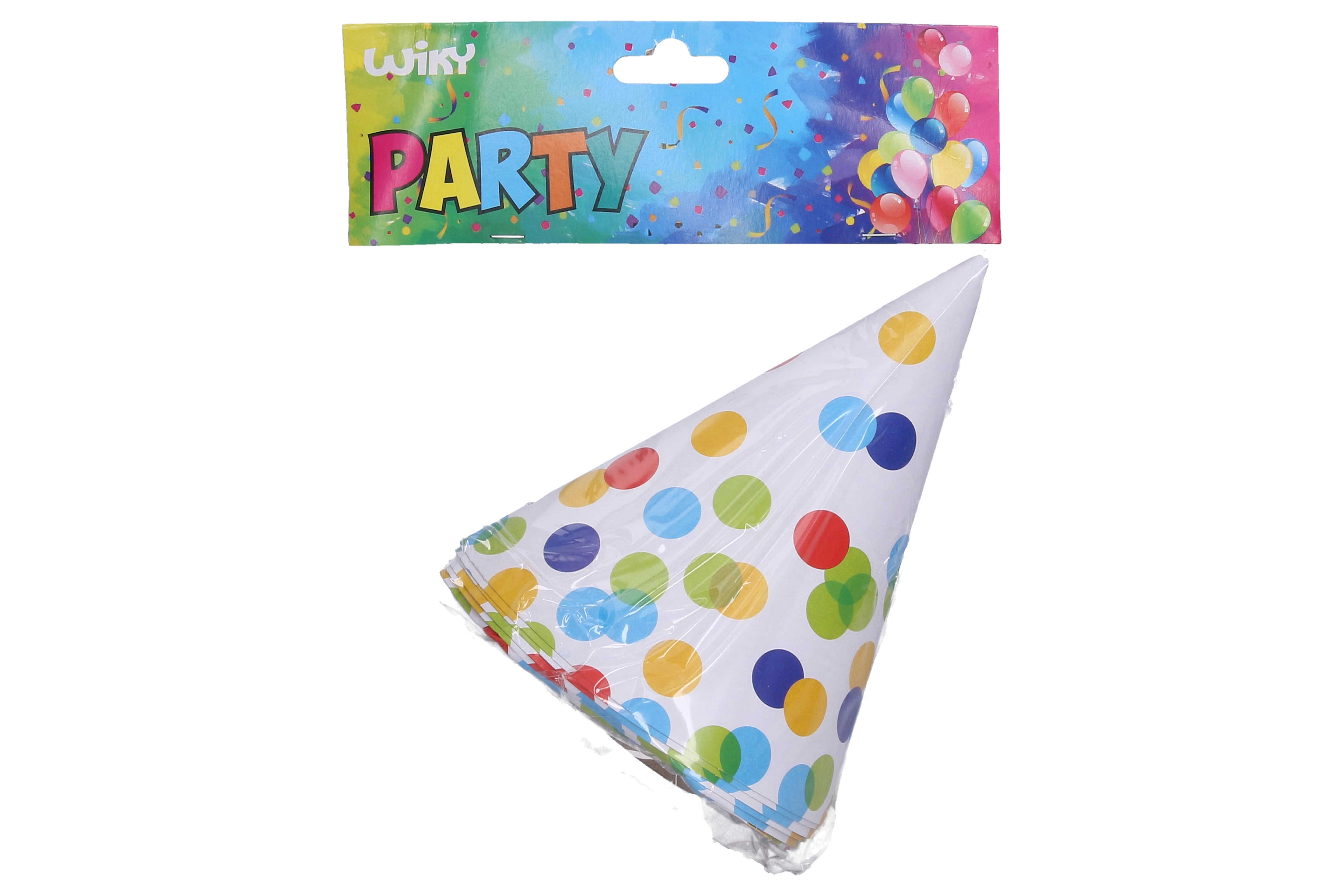 Rīkojiet neaizmirstamu ballīti ar šīm stilīgajām ballīšu cepurītēm “Punktiņi”. Ideāli piemērotas svinībām un izklaidei, katras cepurītes izmērs ir 15 cm.