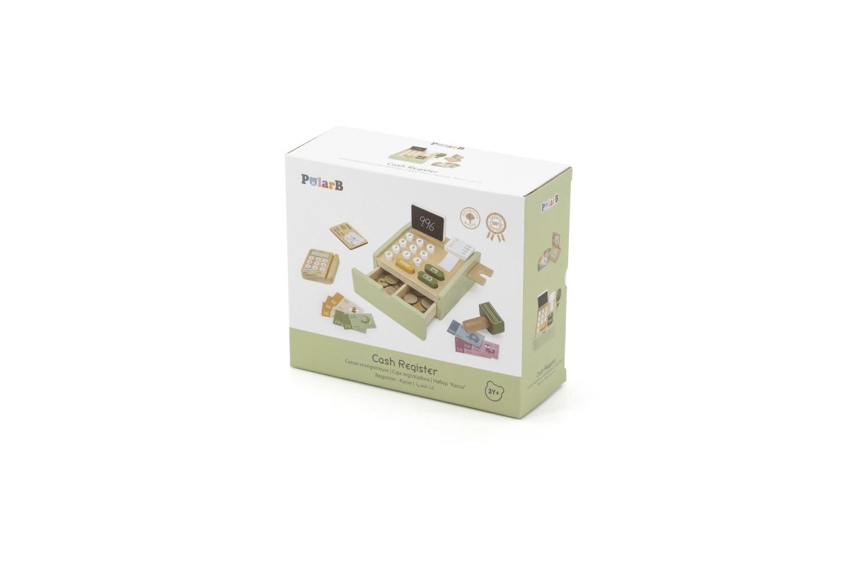 Kase ar izvelkamu atvilktni, pogām, skeneri un papīra rulli uzticami atdarina īstu kasi un motivē bērnus aktīvai rotaļai.