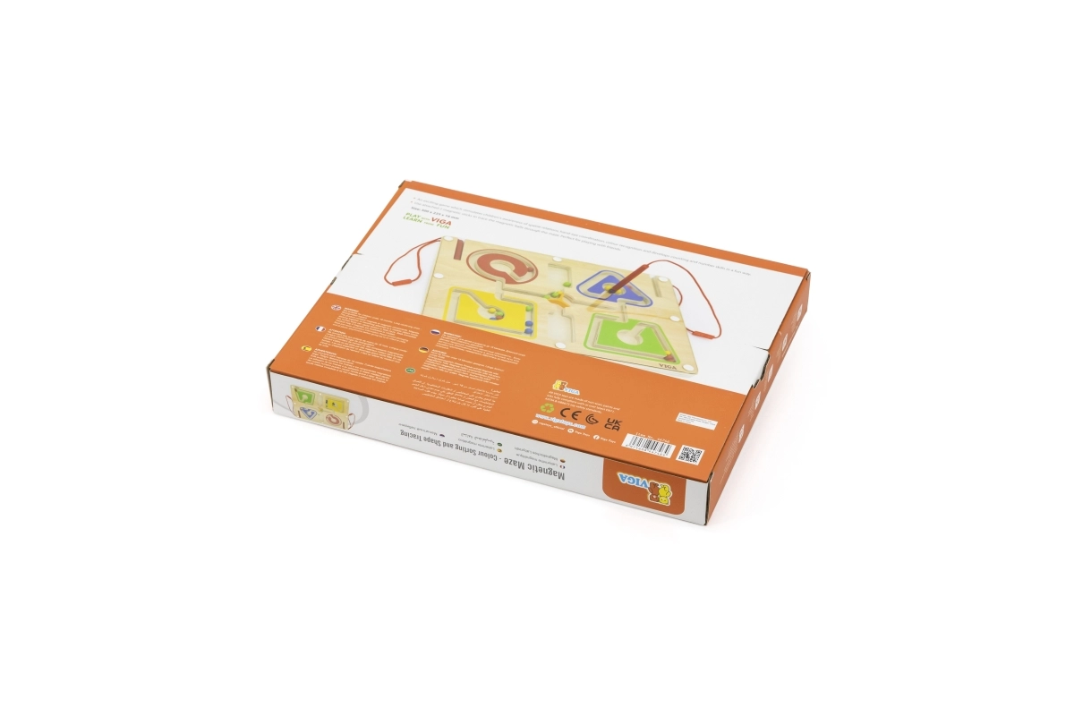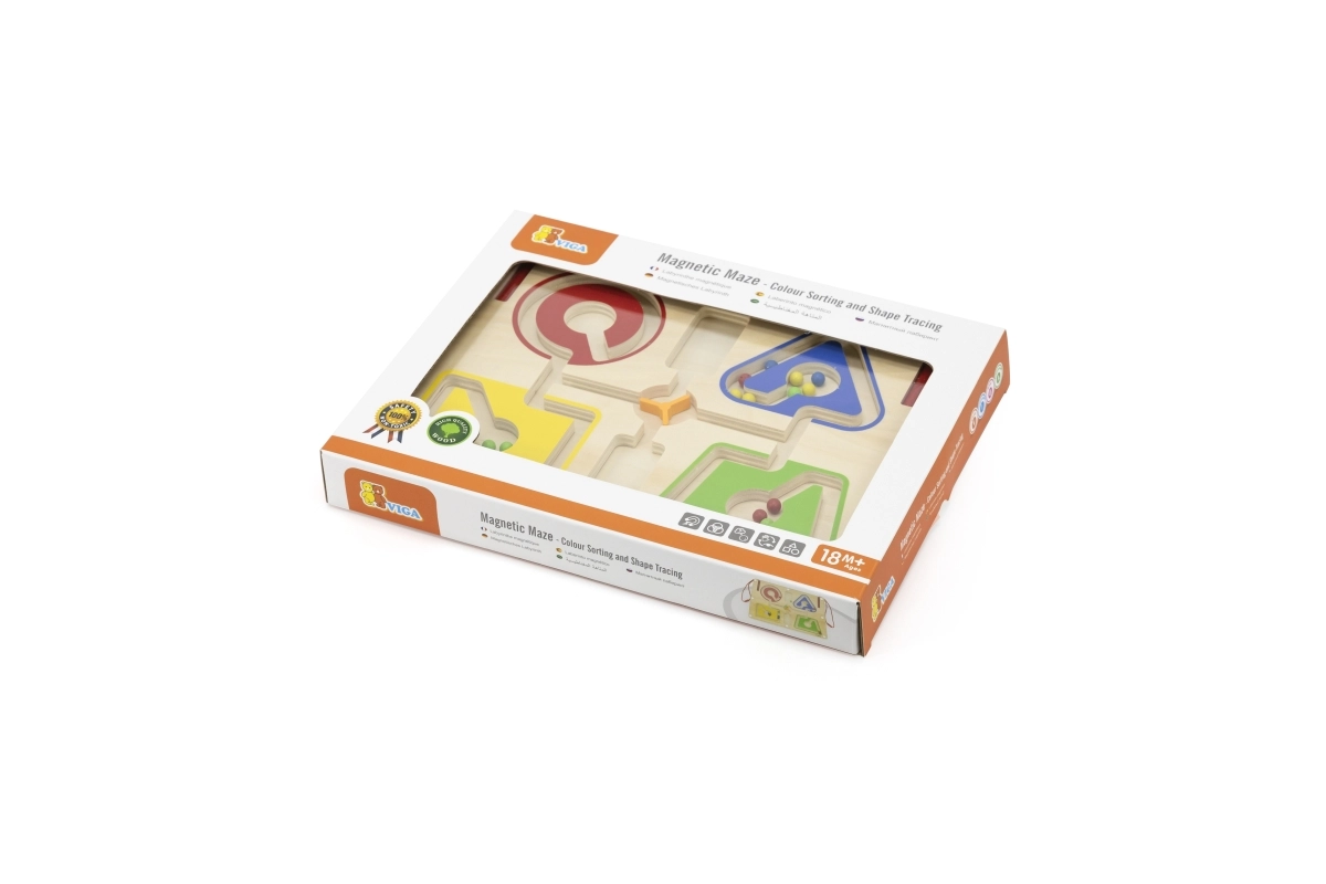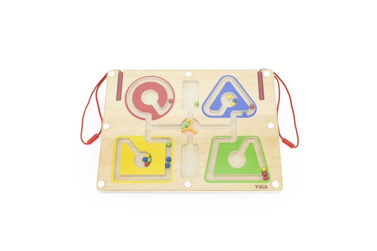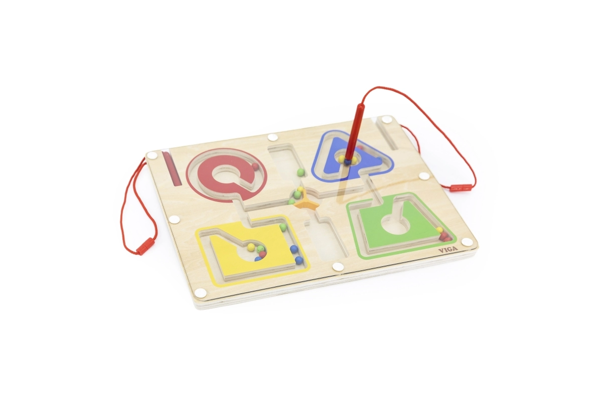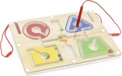 Atklājiet gudru koka magnētisko labirintu, kurā bērni ar magnētiskās pildspalvas palīdzību ved lodītes pa pareizajiem ceļiem. Spēle dabiski attīsta pacietību, koncentrēšanos un loģisko domāšanu, vienlaikus mācoties krāsas un formas.
