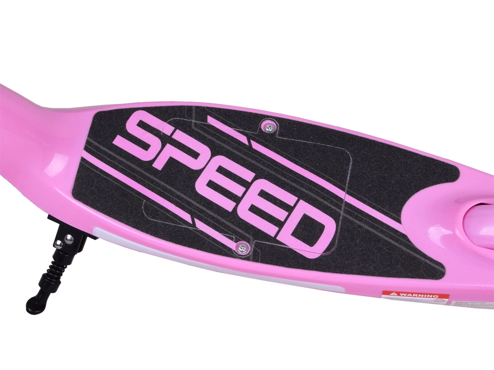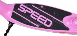 Teksturēta virsma ar uzrakstu SPEED stingri tur kāju. Elektriskā bremze aktivizējas atlaižot sviru, bet kāju bremze nodrošina pārliecinošu apstāšanos.
