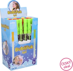 Piedāvājam jums burbulopu nūjiņu, ideāli piemērotu skaistu burbuļu veidošanai, kas sagādā prieku un smieklus. Katra nūjiņa satur 70 ml burbuļšķidruma un ir pieejama četrās pievilcīgās krāsās: zilā, zaļā, dzeltenā un sarkanā.