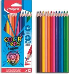 Krāsainie zīmuļi Maped Color'Peps Strong nodrošina spilgtas un košas krāsas ar īpaši izturīgu serdeni. Piemēroti bērniem, pateicoties trīsstūrveida korpusam, kas nodrošina ērtu satvērienu.
