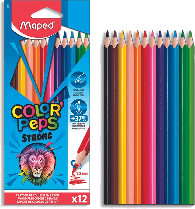 Atklājiet kvalitāti un ērtumu ar Maped Color'Peps Strong zīmuļiem. Šie zīmuļi ir izstrādāti, lai nodrošinātu košas krāsas neatkarīgi no spiediena, ko pielietojat zīmēšanas laikā.