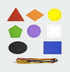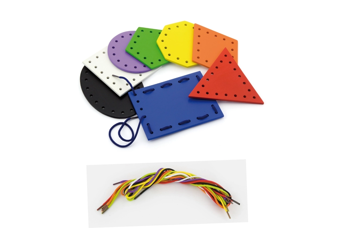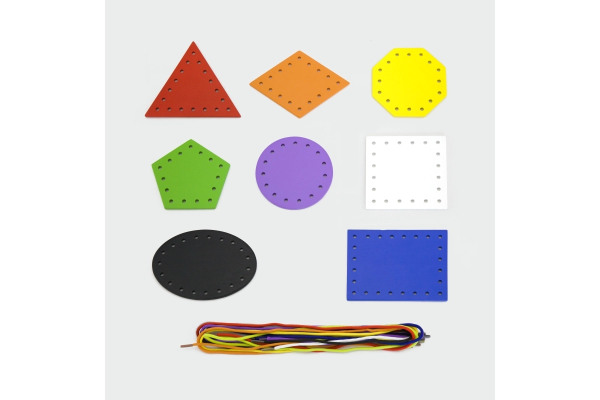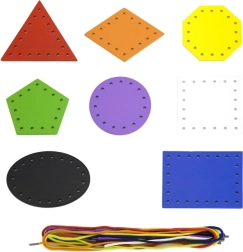 Šis komplekts atbalsta dabisku mācīšanos montesori garā – bērns ver aukliņas caur sagatavotiem caurumiņiem, veido savus rakstus un vienlaikus stiprina satvērienu un koncentrēšanos. Krāsainās formas aicina izzināt, aukliņas ir viegli satveramas, un aktivitāte patīkami nodarbina gan mājās, gan bērnudārzā.
