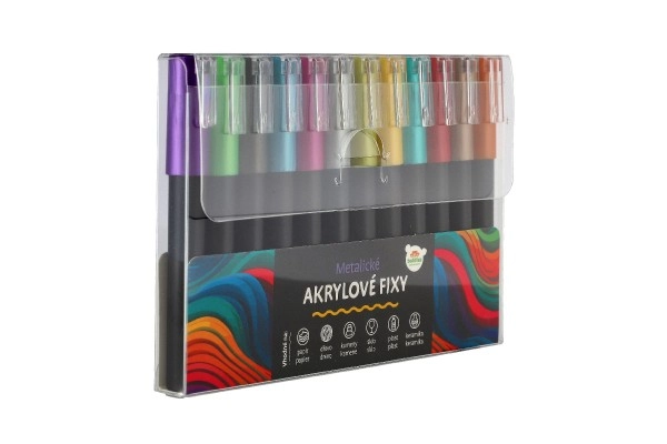 Ar mūsu metālisko akrila flomāsteru komplektu jūsu radošums atdzīvosies. Šajā komplektā ir 12 flomāsteri, kurus ir viegli lietot un kas lieliski piemēroti daudzveidīgiem projektiem.