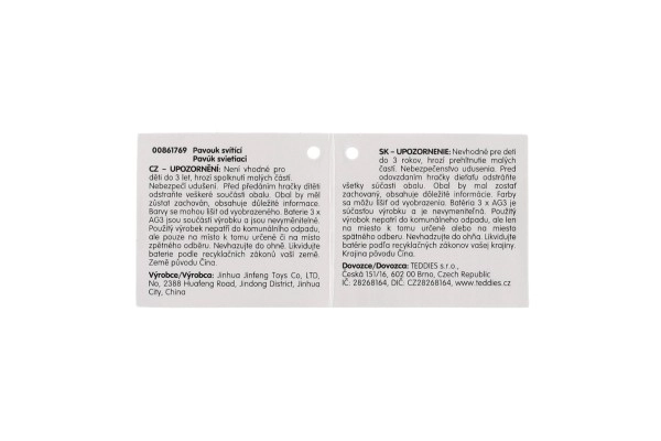 Izklaidējoša antistresa bumbiņa zirnekļa formā nodrošina ātru spriedzes mazināšanu un maņu stimulāciju gan bērniem, gan pieaugušajiem. Piespiežot tā iedegas, pateicoties iebūvētām baterijām, bet mīkstais, patīkamais silikons ar garām “tausteklēm” aicina spiest un spēlēties. Tās diametrs ir 10 cm, pieejama 6 krāsās un darbojas ar 3× AG3 (nemaināmas). Piemērots no 3 gadu vecuma.