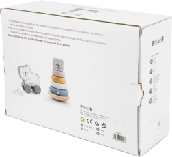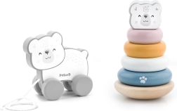 Spēlējoties ar piramīdu, bērni attīsta loģiku, pacietību un krāsu atpazīšanu, savukārt velkamais lācītis dabiski veicina iešanu un koordinācijas prasmes. Abas rotaļlietas ir izgatavotas no kvalitatīva koka ar gludām malām drošai lietošanai.