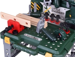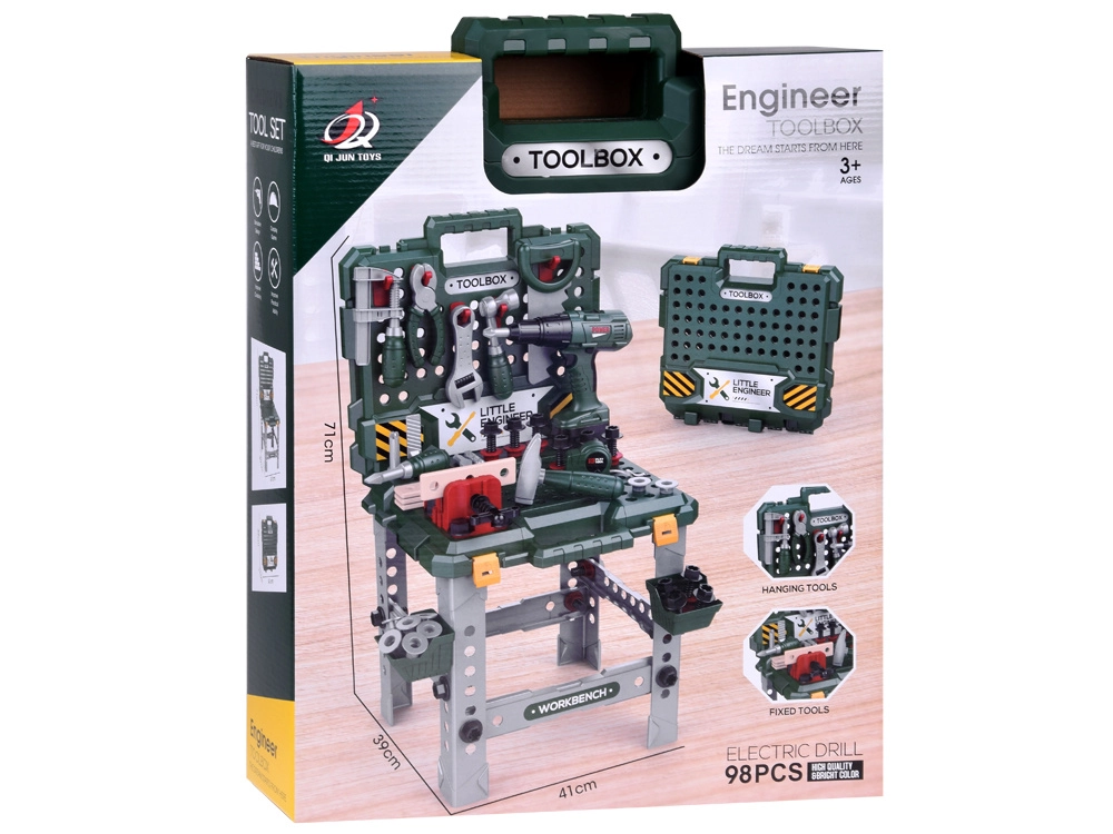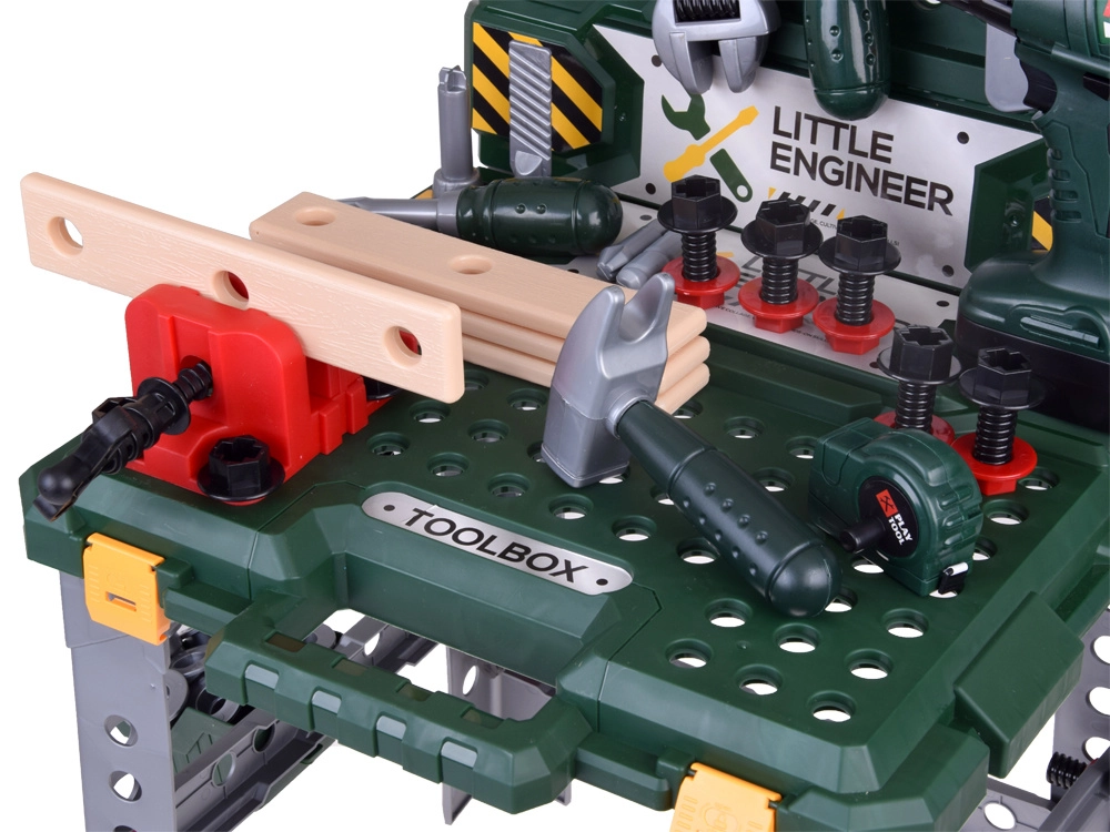 Šis reālistiskais bērnu darba sols ir ideāli piemērots mazajiem mehāniķiem, kuri vēlas atklāt meistarošanas pasauli. Pateicoties daudzveidīgajam instrumentu un piederumu klāstam, bērni trenē roku–acu koordināciju, pacietību un loģisko domāšanu. Akumulatora urbjmašīna ir viegli lietojama un sniedz autentisku skrūvēšanas pieredzi.