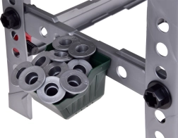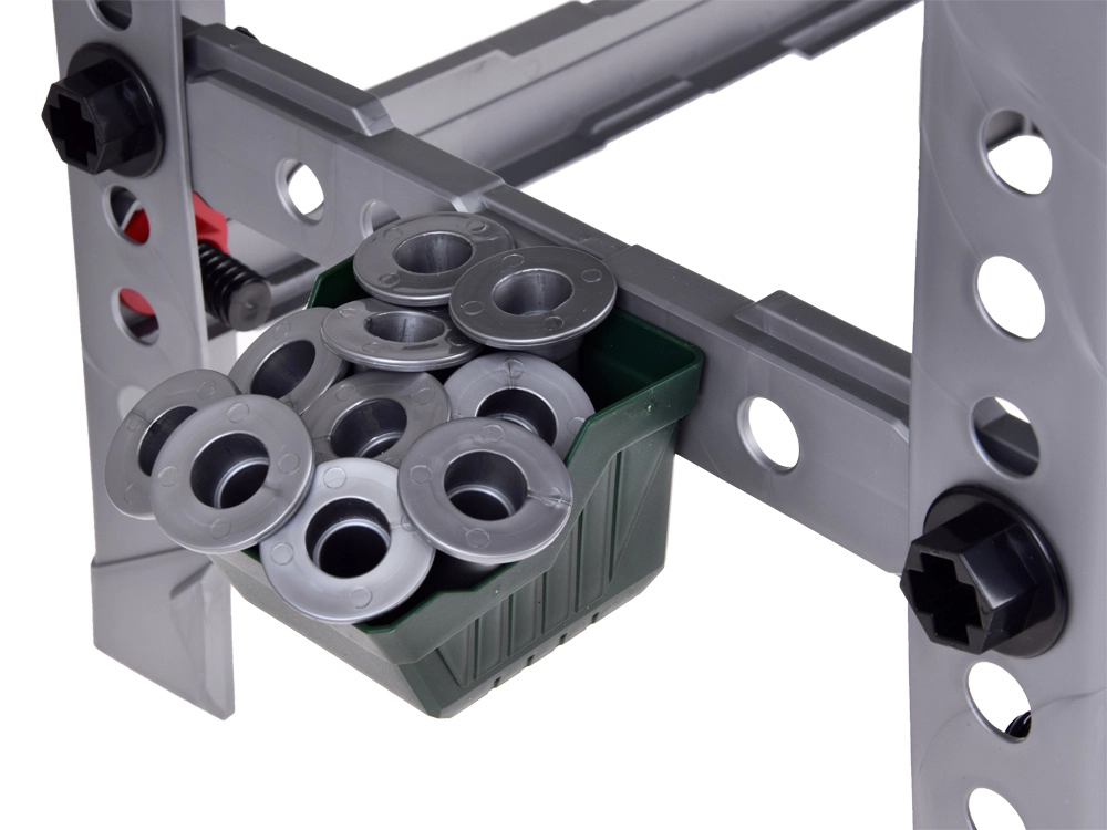 Pēc spēles visu komplektu var vienkārši salocīt kompaktā koferītī. Integrētās nodalījumu kastes uztur skrūves, uzgriežņus un instrumentus pārskatāmi savās vietās.