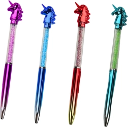 Eleganta lodīšu pildspalva ar vienradža figūriņu un caurspīdīgu korpusu, kas pildīts ar mirdzošiem kristāliņiem, piešķirs jūsu piezīmēm šarmu un šķipsniņu maģijas. Plūdenu rakstīšanu nodrošina zila tinte 0,7 mm. Lieliski piemērota ikdienas lietošanai un kā dāvanu aksesuārs.