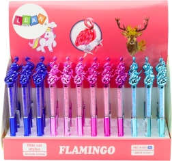 Atklājiet elegantu lodīšu pildspalvu ar dekoratīvu flamingu, kas apvieno praktisku rakstīšanu ar oriģinālu dizainu. Caurspīdīgais korpuss, pildīts ar sīkiem “dimantiņiem”, kustībā mirdz un jūsu piederumiem piešķir unikālu izskatu. Pateicoties zilajai tintei 0,7 mm, pildspalva lieliski der ikdienas piezīmēm, parakstiem un skolas darbiem.