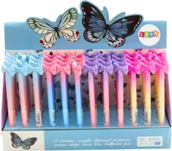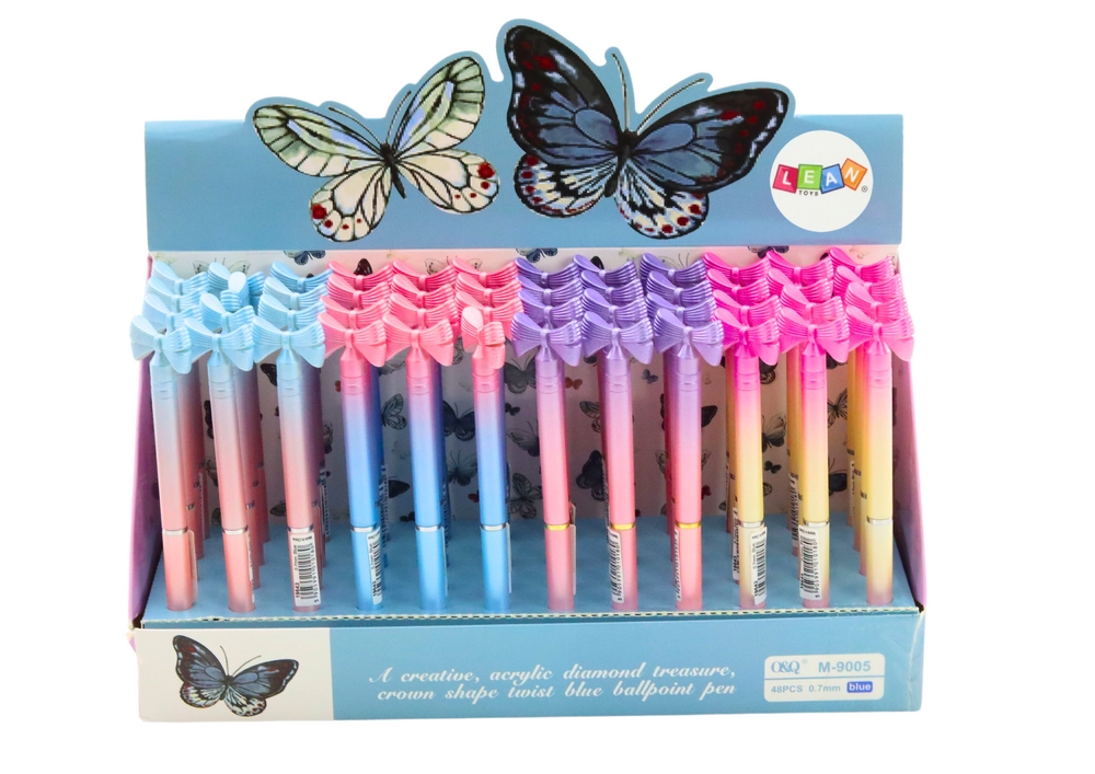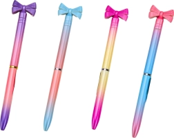 Stilīga lodīšu pildspalva ar dekoratīvu bantīti apvieno eleganci un funkcionalitāti. Tai ir krāsains korpuss, tā raksta ar zilu tinti un 0,7 mm smaili, un ir ideāli piemērota ikdienas rakstīšanai un arī dāvanām. Korpusa krāsa tiek izvēlēta nejauši.