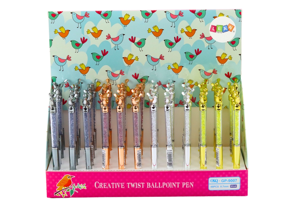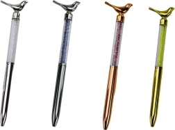 Šī stilīgā lodīšu pildspalva izceļas ar oriģinālu noslēgumu putniņa formā un caurspīdīgu daļu, kas pildīta ar sīkiem kristāliņiem, kuri kustības laikā viegli mirdz. Lieliski piemērota skolai, birojam un kā dāvanu aksesuārs.