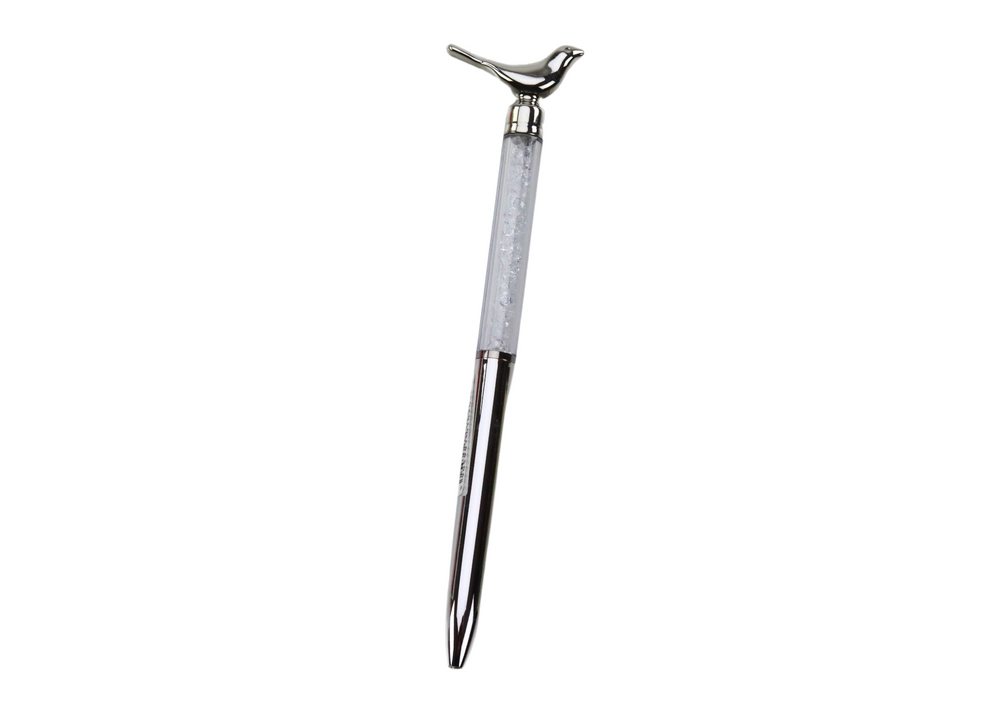 Caurspīdīgā daļa ar sīkiem kristāliņiem un dekoratīvs noslēgums putniņa formā piešķir jūsu rakstīšanai šarmu un eleganci.