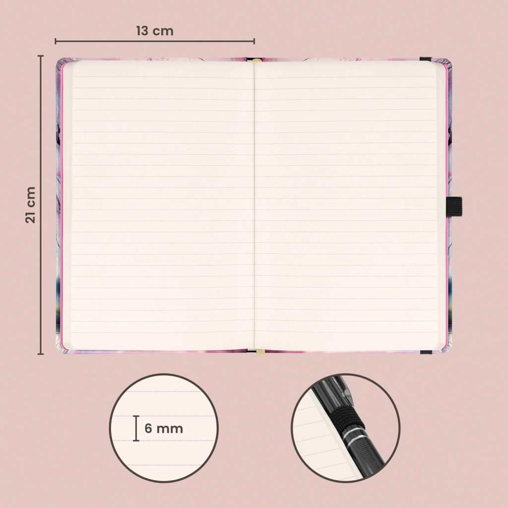 Formāts 13 × 21 cm ir lieliski piemērots gan somai, gan rakstāmgaldam. Ar 172 lapām patīkamā dzeltenā papīrā būs pietiekami daudz vietas idejām, dienasgrāmatas ierakstiem un darba piezīmēm.