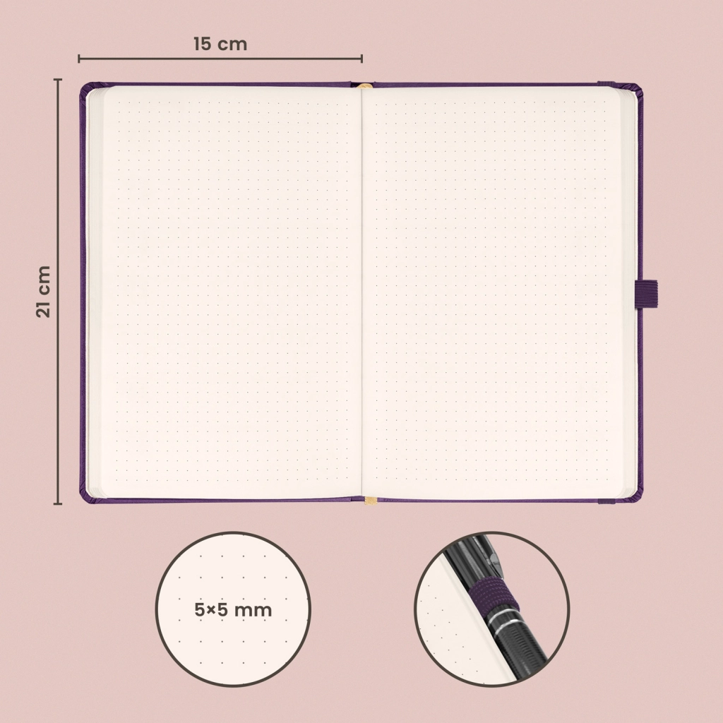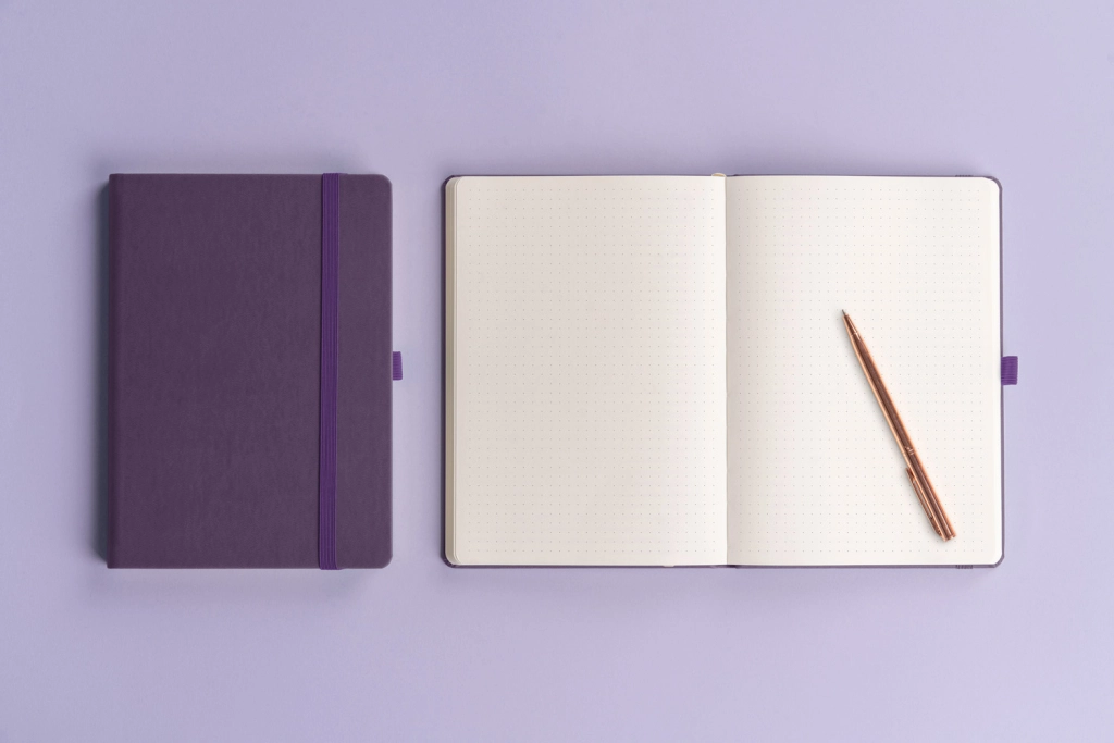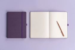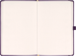 Stilīga punktēta piezīmju grāmata NOTIQUE Aprint Neo violetā krāsā apvieno klasiku un eleganci. Tai ir maigi teksturēta virsma, uz kuras viegli var iespiest uzņēmuma logotipu, un praktisks formāts 15 × 21 cm ikdienas rakstīšanai, plānošanai un skicēšanai.