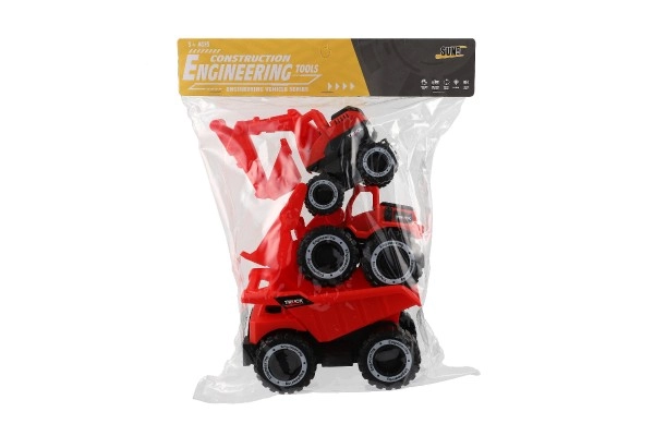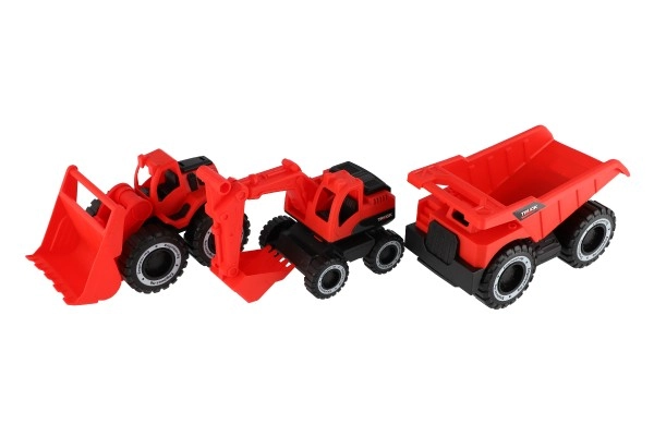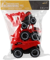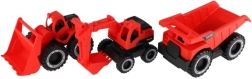 Šajā daudzpusīgajā komplektā ir trīs izturīgas plastmasas mašīnas – ekskavators, iekrāvējs un damperis –, kas bērniem sniegs stundām ilgu radošu izklaidi. Pateicoties brīvgaitai, transportlīdzekļi viegli sāk kustību ar nelielu grūdienu, bet kustīgās detaļas (kauss, strēle, kravas kaste) piešķir spēlei reālistiskumu.