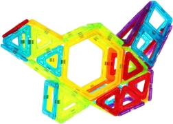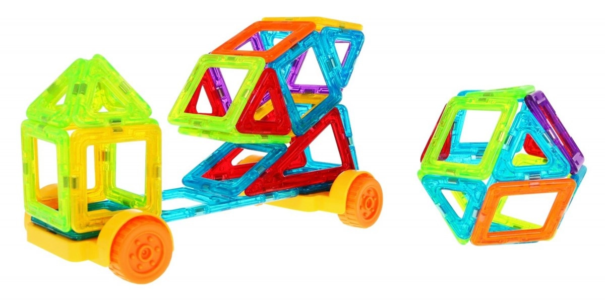 Šis radošais magnētiskais konstruktors piedāvā 128 kvalitatīvas detaļas dažādās formās un krāsās. Pateicoties drošiem magnētiskajiem savienojumiem, var būvēt stabilus modeļus – no namiņiem un pilīm līdz automašīnām, karuseļiem vai futūristiskām konstrukcijām. Dzīvīgās krāsas piesaista uzmanību un veicina aizraujošu mācīšanos spēles veidā.
