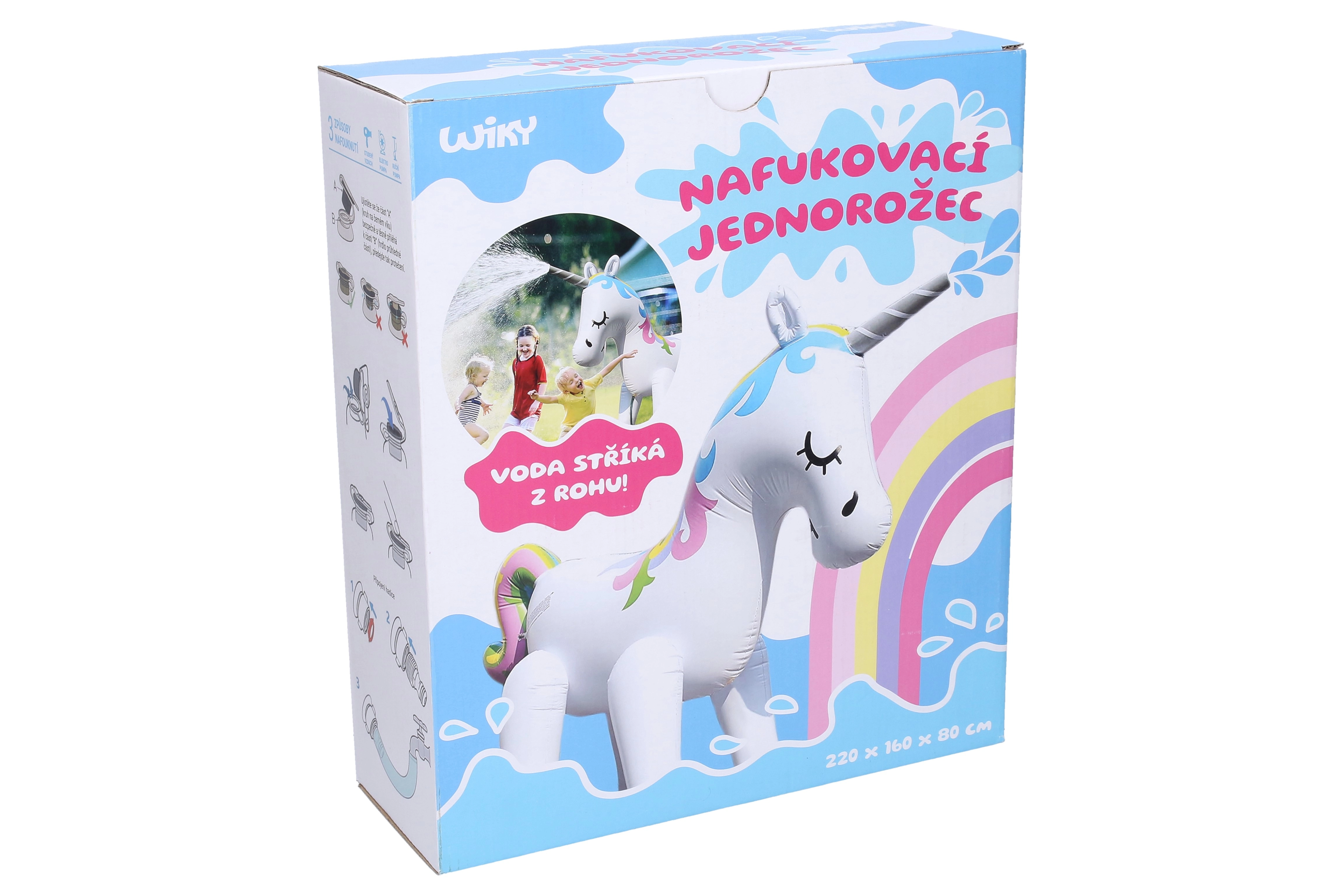 Šis mīlīgais uzpūšamais vienradzis pārvērtīs dārzu burvīgā ūdens rotaļu laukumā. Pateicoties ūdens šļakstīšanas funkcijai, tas ir ideāli piemērots karstām dienām – pietiek pievienot ūdeni (ja šī funkcija ir atbalstīta), un bērni izbaudīs daudz atsvaidzinošas jautrības. Izturīgais izpildījums un ietilpīgie izmēri 220 × 160 × 80 cm nodrošina stabilitāti un ērtu lietošanu.