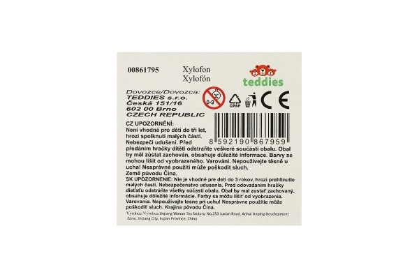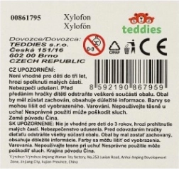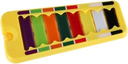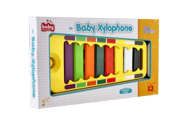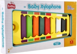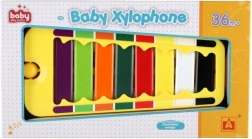Krāsains bērnu ksilofons 24 cm garumā apvieno plastmasas korpusu un metāla taustiņus, nodrošinot patīkamu, skaidru toni. Komplektā ir vālīte un kastīte ar izmēriem 29 × 16 × 3 cm. Ideāli piemērots pirmajiem muzikālajiem eksperimentiem un ritma, dzirdes un krāsu atšķiršanas attīstīšanai. Piemērots bērniem no 3 gadu vecuma.