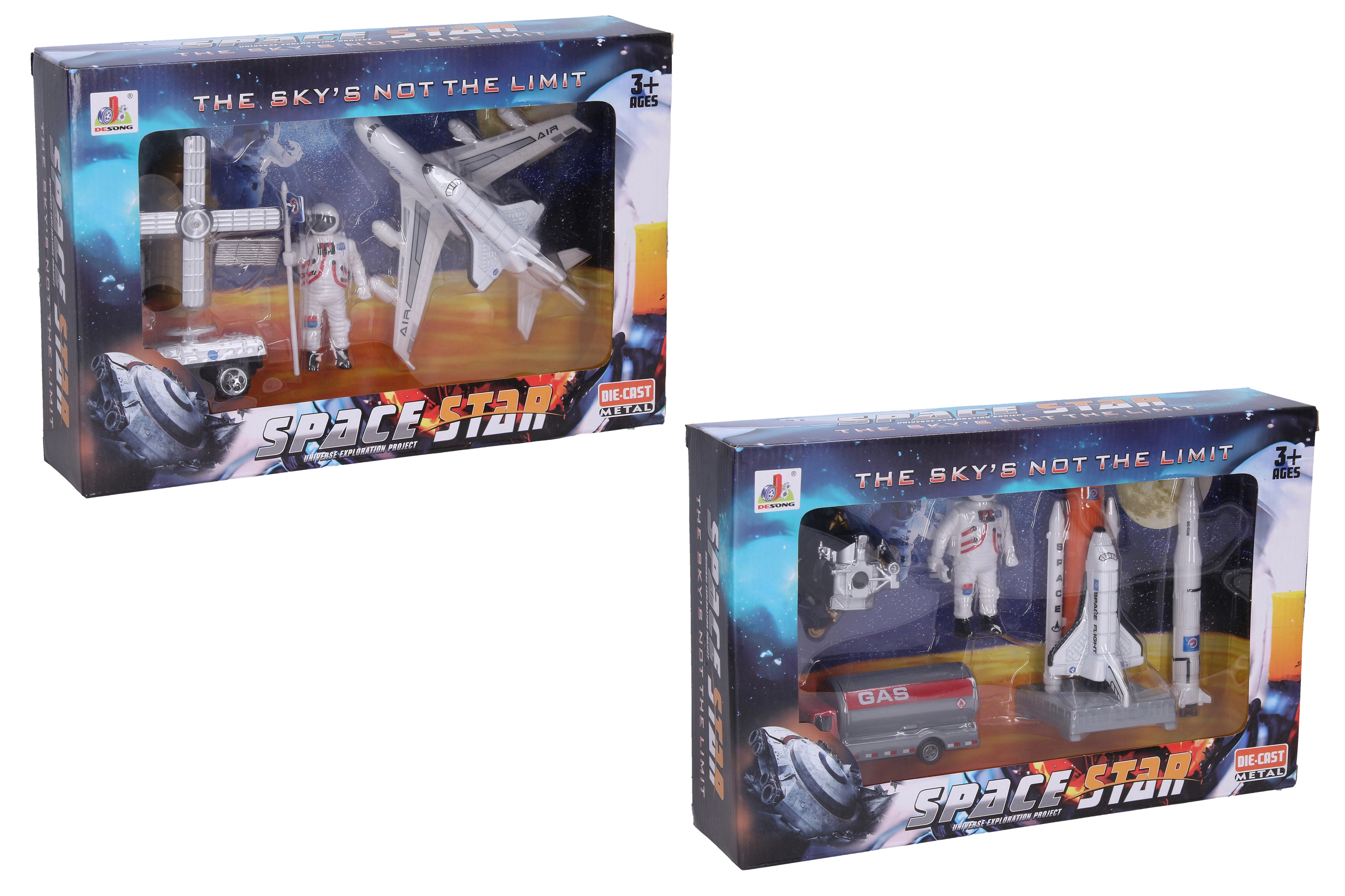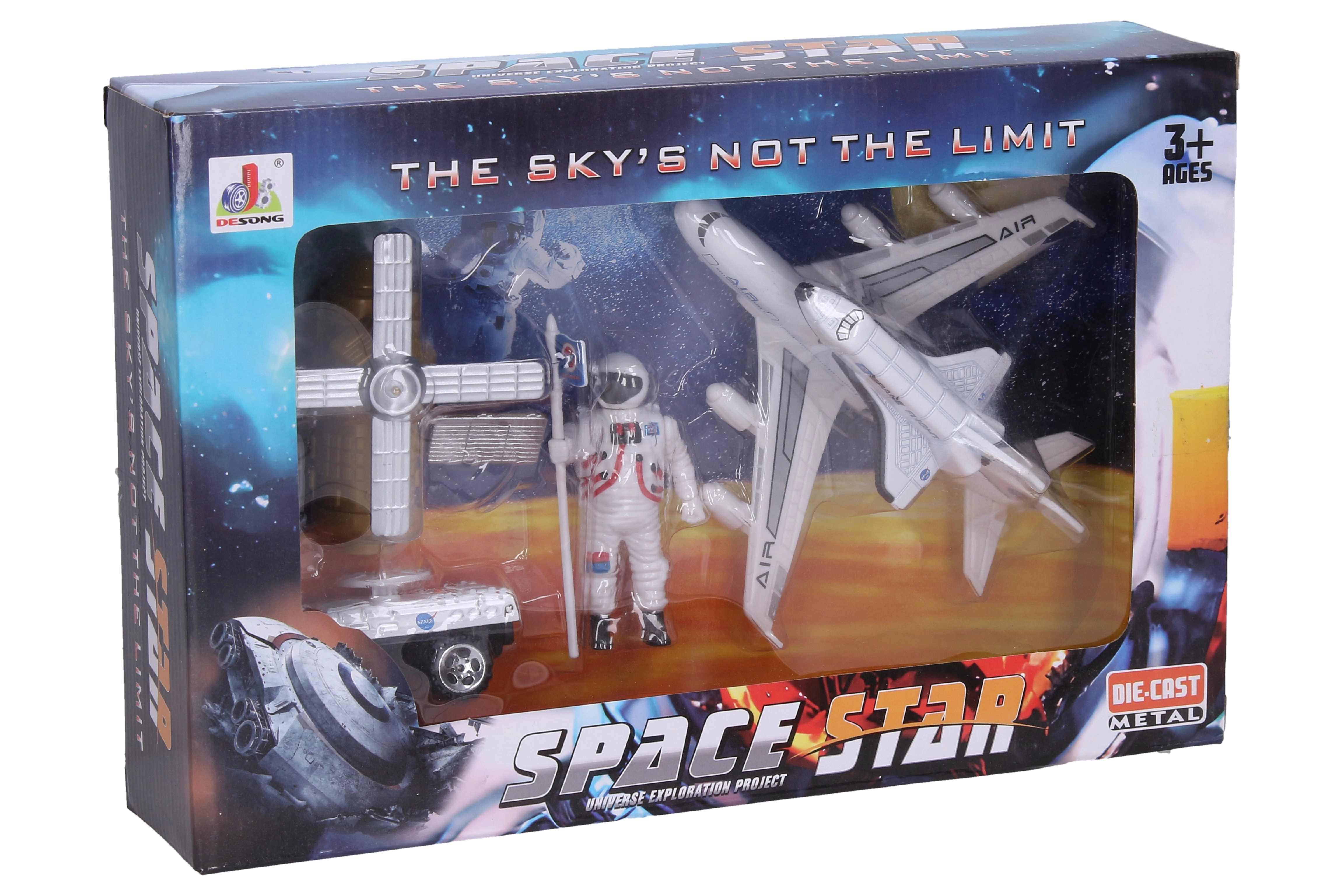 Šis 5 daļu kosmosa komplekts Space Star bērniem piedāvā autentisku kosmisko misiju atmosfēru. Kvalitatīvas die-cast metāla detaļas kombinācijā ar izturīgu plastmasu nodrošina stingrību un ilgmūžību. Bērni var simulēt raķetes palaišanu, nosēšanos uz Mēness un degvielas uzpildi.