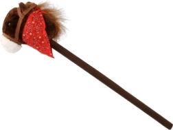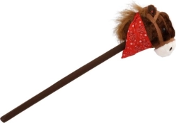 Ar brūnu plīša galvu un košu sarkanu lakatu tas piešķir spēlei kovboju noskaņu, savukārt izturīgais koka kāts nodrošina stabilitāti un drošību. Ideāli piemērots lietošanai telpās un ārā.