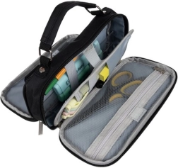 Nodaliet rakstāmpiederumus, piederumus un elektroniku. Divvirzienu rāvējslēdzēji ļauj ātri un ērti atvērt no abām pusēm.